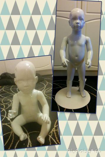 Hade turen att få köpa två skyltdockor till ett mycket bra pris från en affär som tyvärr gått i konkurs här hemma. Lillen har ungefär storlek 62/68 och den lite större 80/86. Så förhoppningsvis kommer ni få se mer av dessa små vita skönheter framöver.