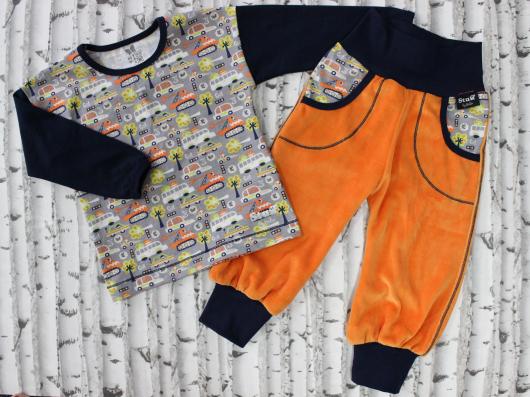Det har blivit två små set, båda i storlek 92, Det ena lite somrigare till en tjej och det andra lite höstigare till en kille.