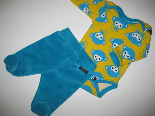 En body med de sköna aporna och ett par turkosblå byxor med fötter har det blivit hittills.