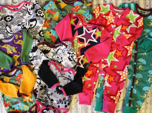 Att sy bebiskläder är ju för roligt, det kan aldrig bli för färgglatt.