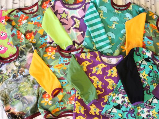 Sen blev det tre tröjor, en t-shirt och två långämade. De två med dinosaurier ska till ett syskonpar och monstertrucktröjan till en annan liten prins. Dinotyget och monstertrucktyget kommer från Jonic.