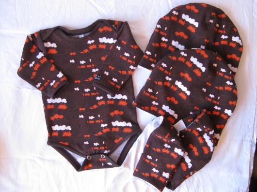 Det blev en body, ett par byxor, en liten mössa och en dregglis.