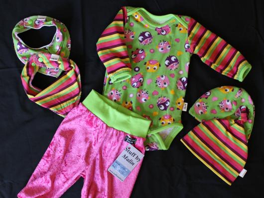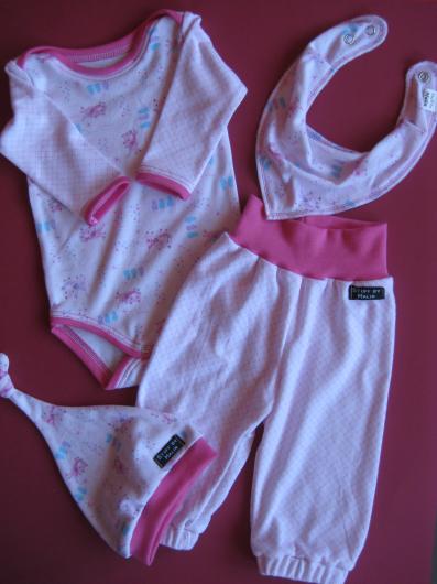 Det blev en body, ett par byxor, en liten mössa och en dregglis.
