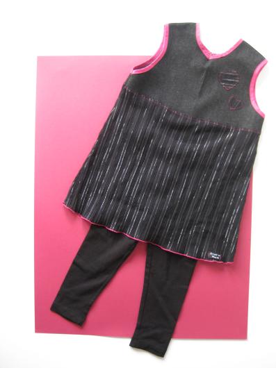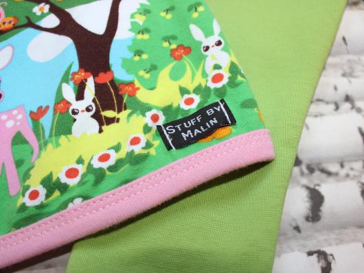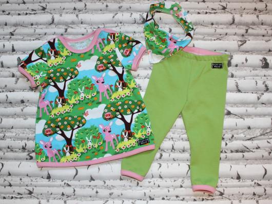 Det har också blivit en doppresent till en liten flicka. Tyckte detta tyget passade så bra till modellen på tunikan. Inte 100% rätt grönfärg på tightsen men absolut godkänt.