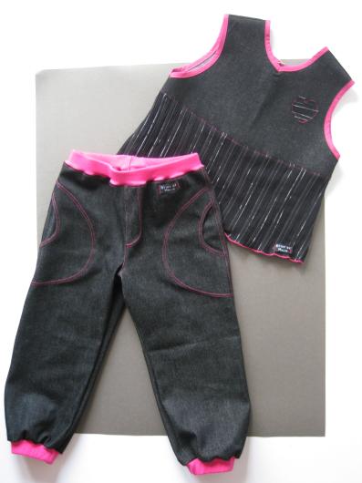 På beställning har jag sytt lite småkläder i storlek 68 till en liten tjej. Tyvärr är färgerna lite dåligt återgivna på korten. De är egentligen mycket mer lila.