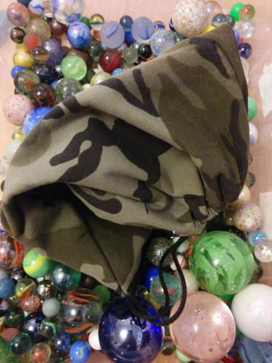 Igår fick jag en specialbeställning av sonen som ville ha en ny kulpåse. Såhär blev den efter att han botaniserat i tygskåpet. Han har till och med hjälpt till att klippa ut och vara med och sy lite.