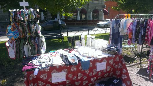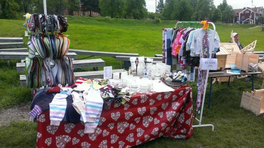 Såhär blev ståndet till marknaden igår. En blandad färglad kompott av barnkläder och lite mer "vuxna" ljus- och flaskpåsar.