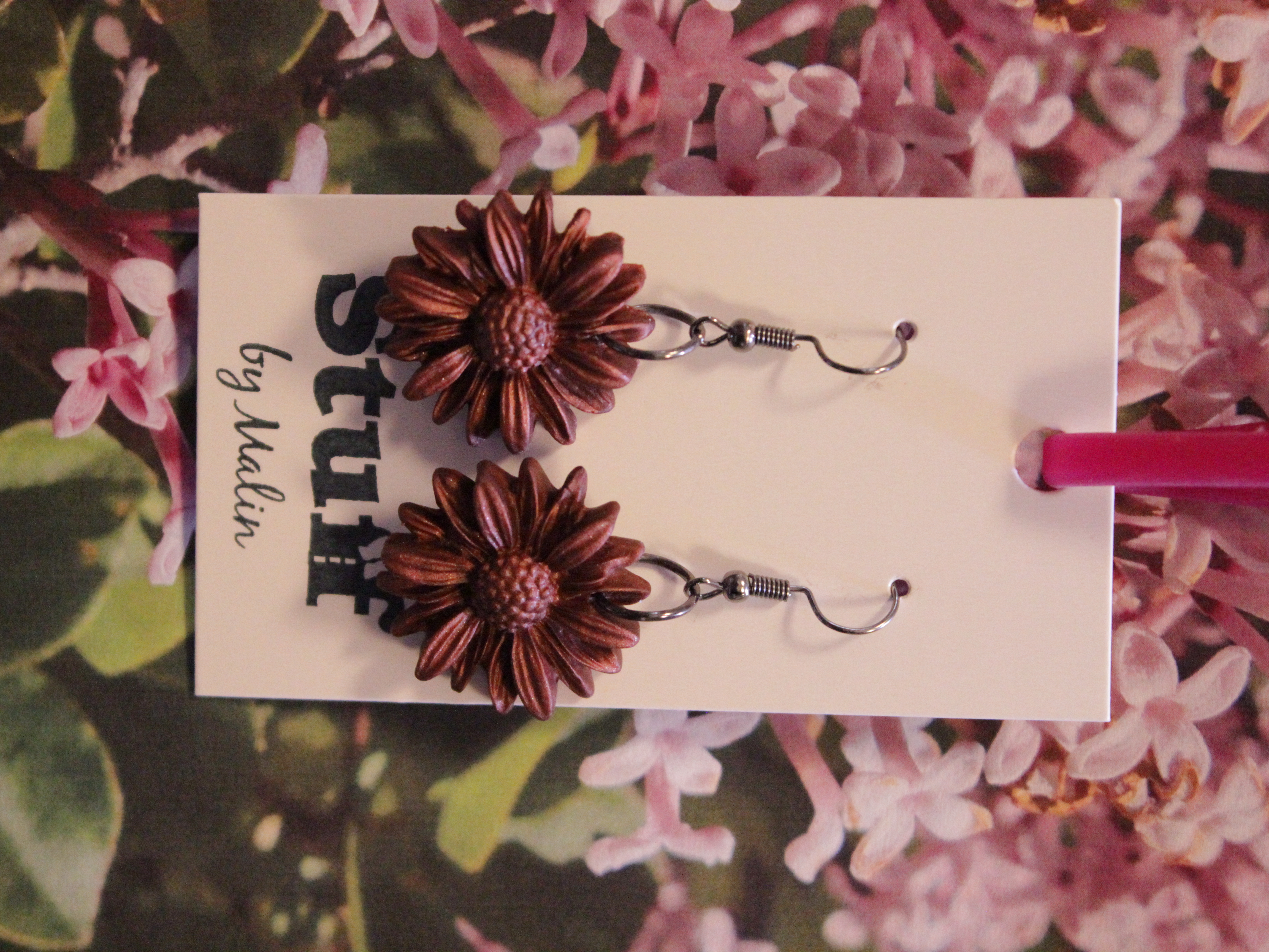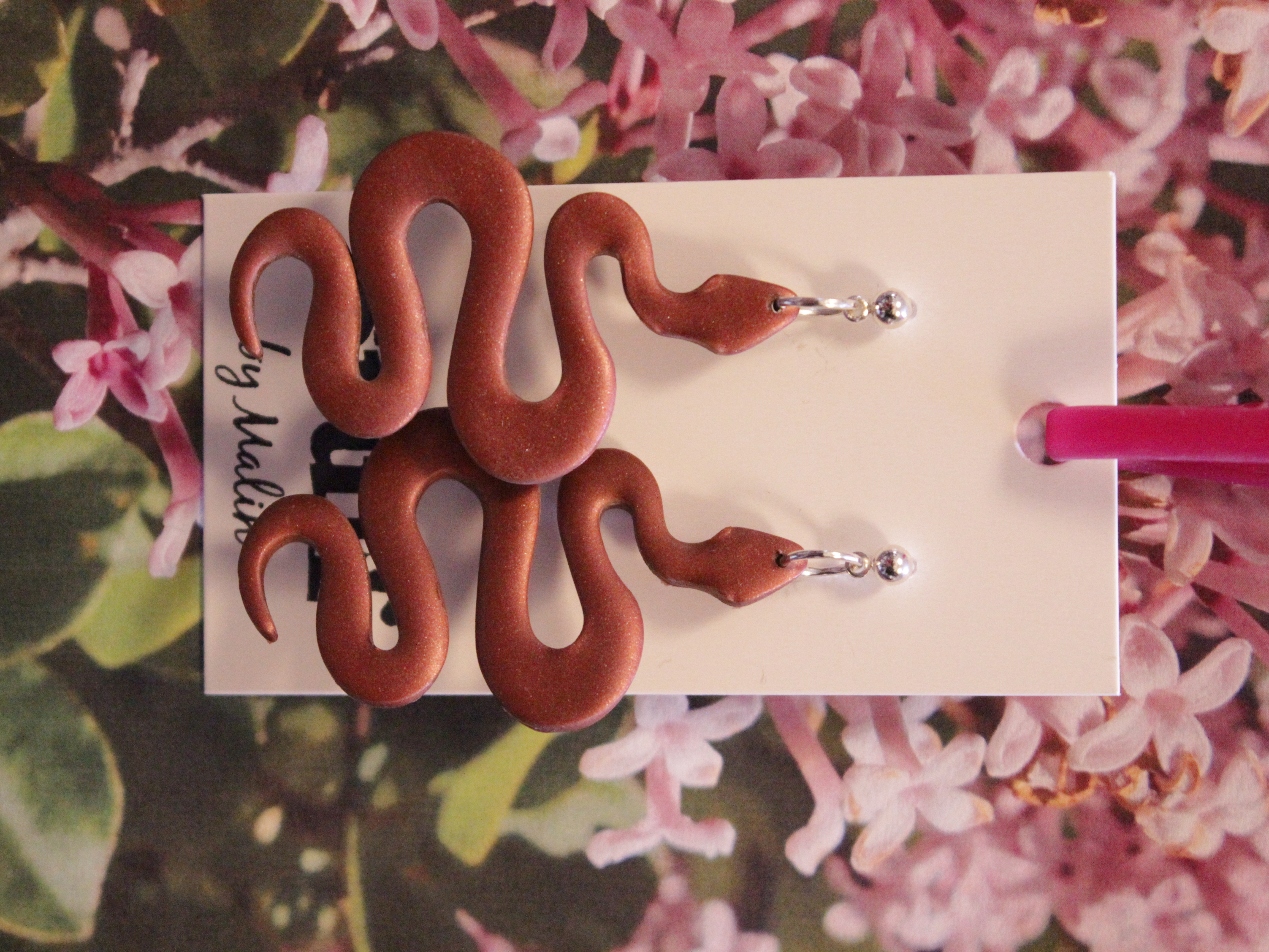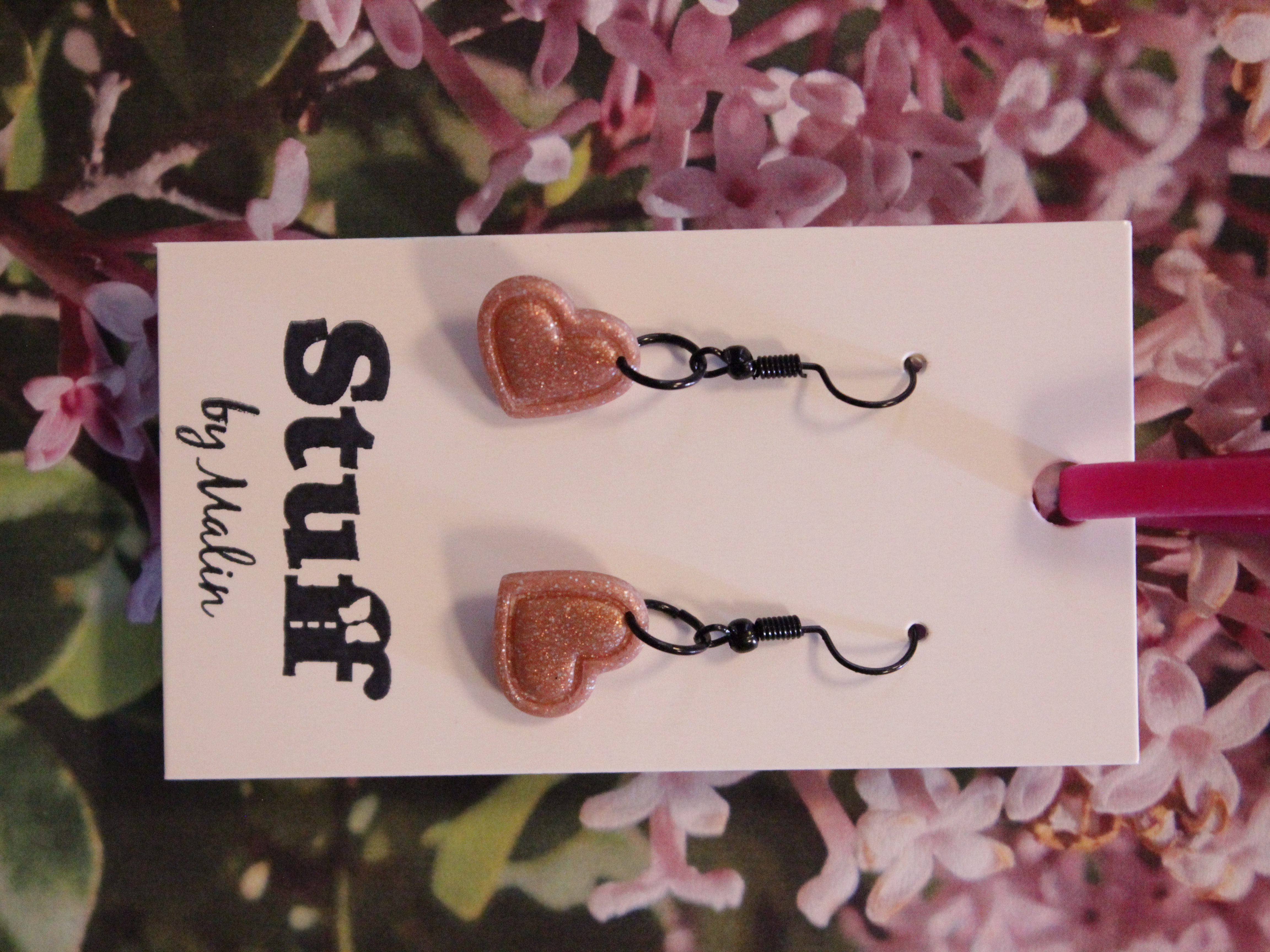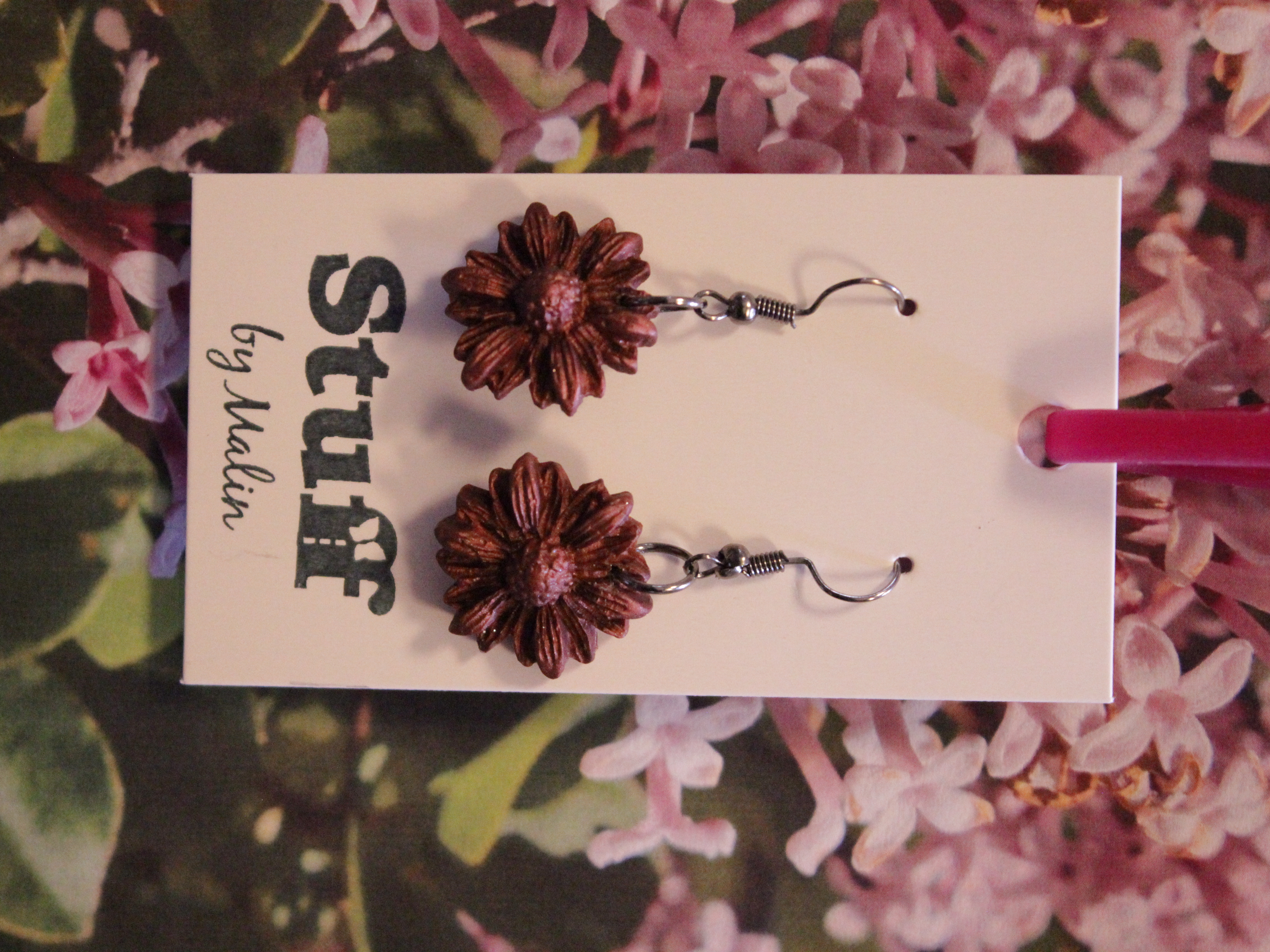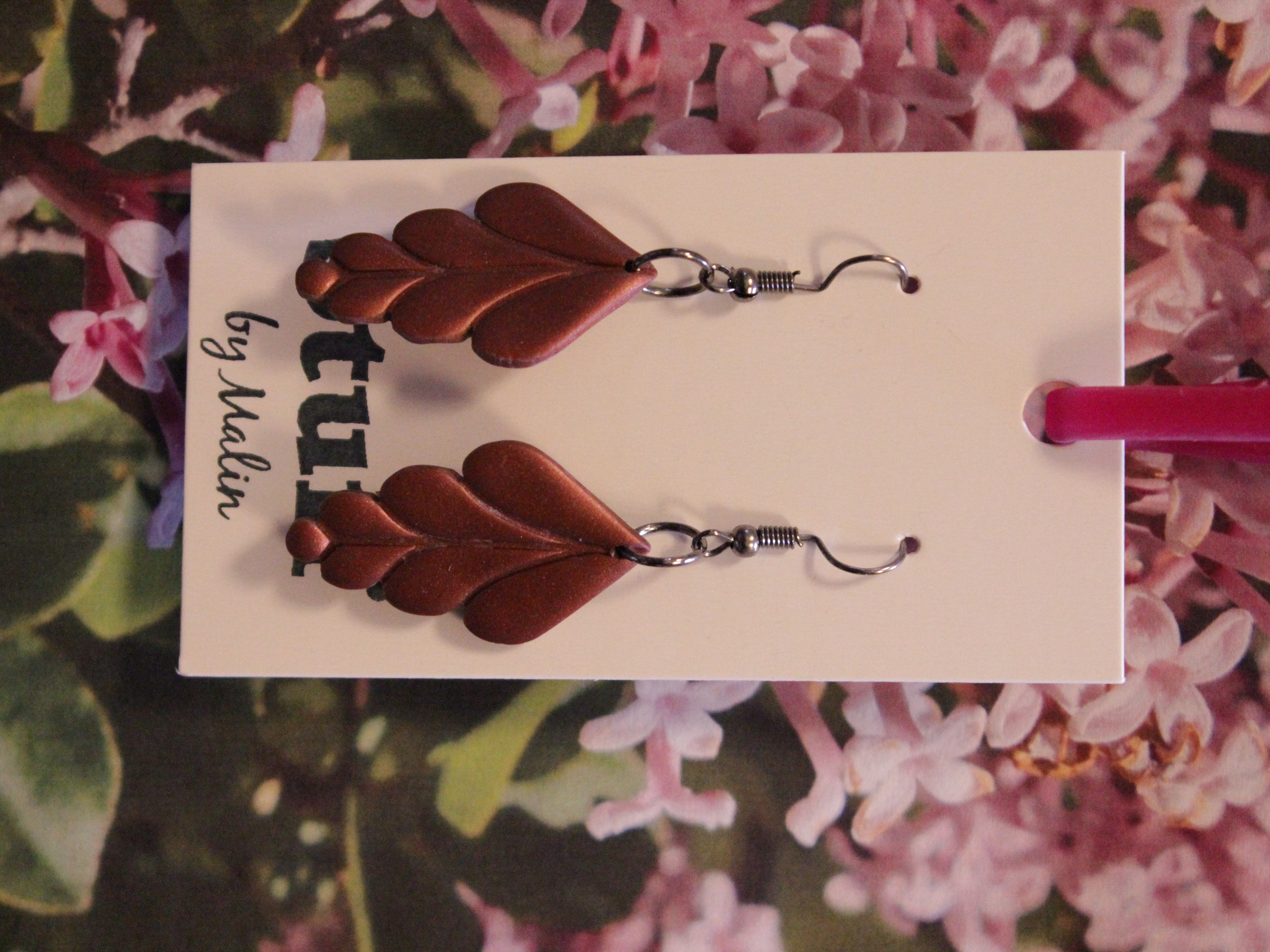 Örhängen tillverkade av polymerlera, pärlor och/eller metallberlocker av olika slag. Alla öronkrokar och stift är nickelfria. Smycken tillverkade av polymerlera är efter härdning i ugn mycket lätta och aningen flexibla.