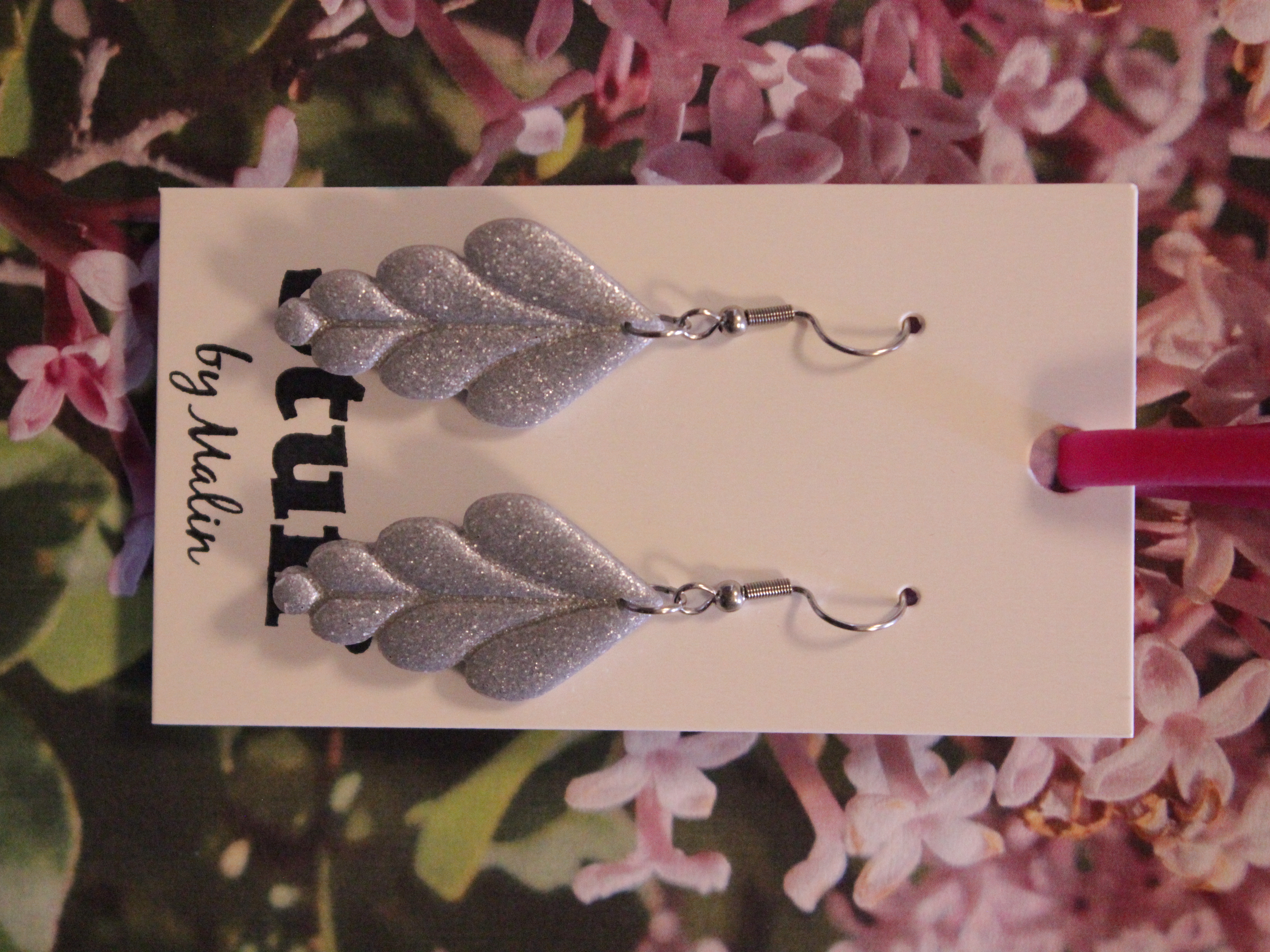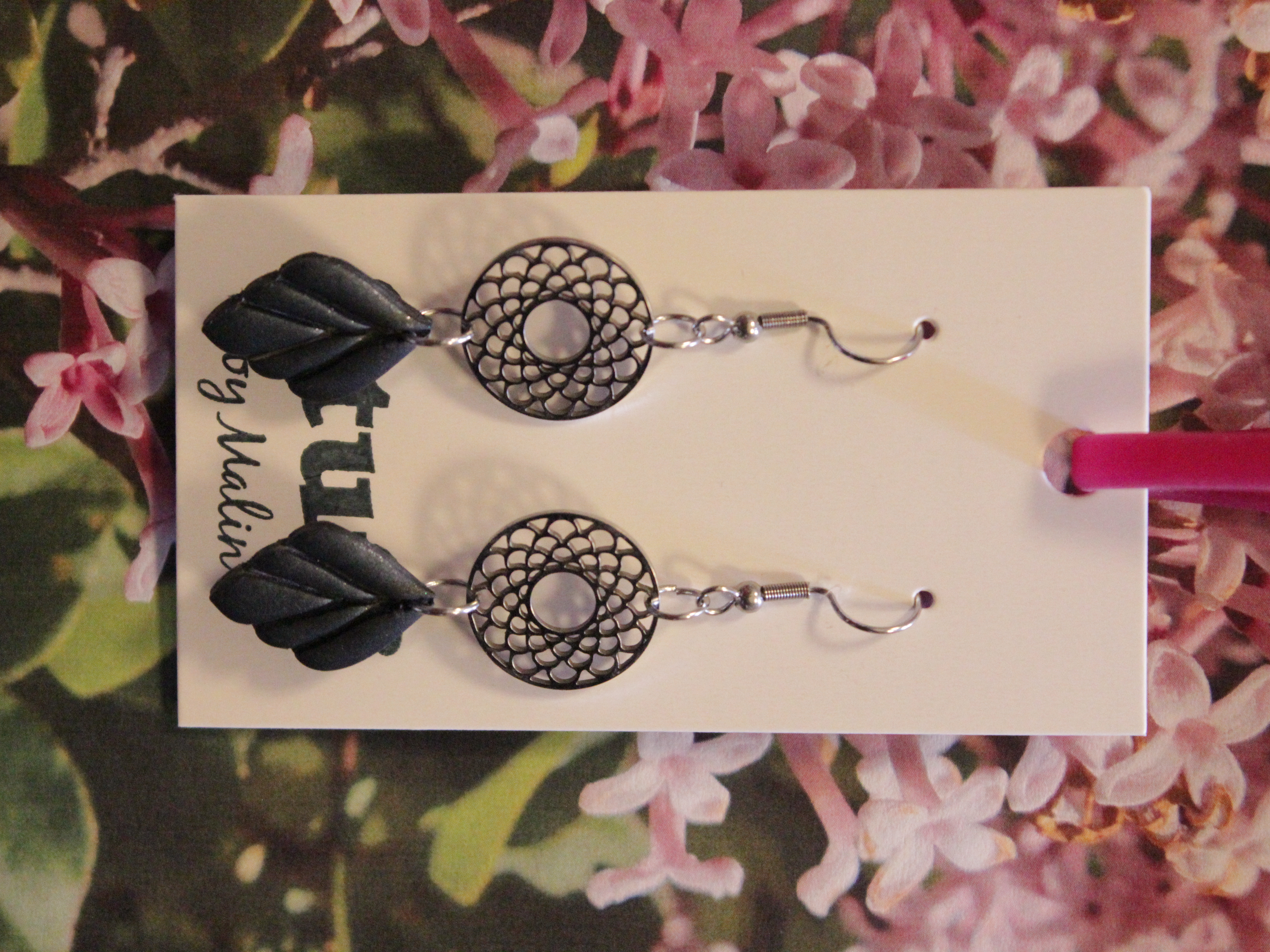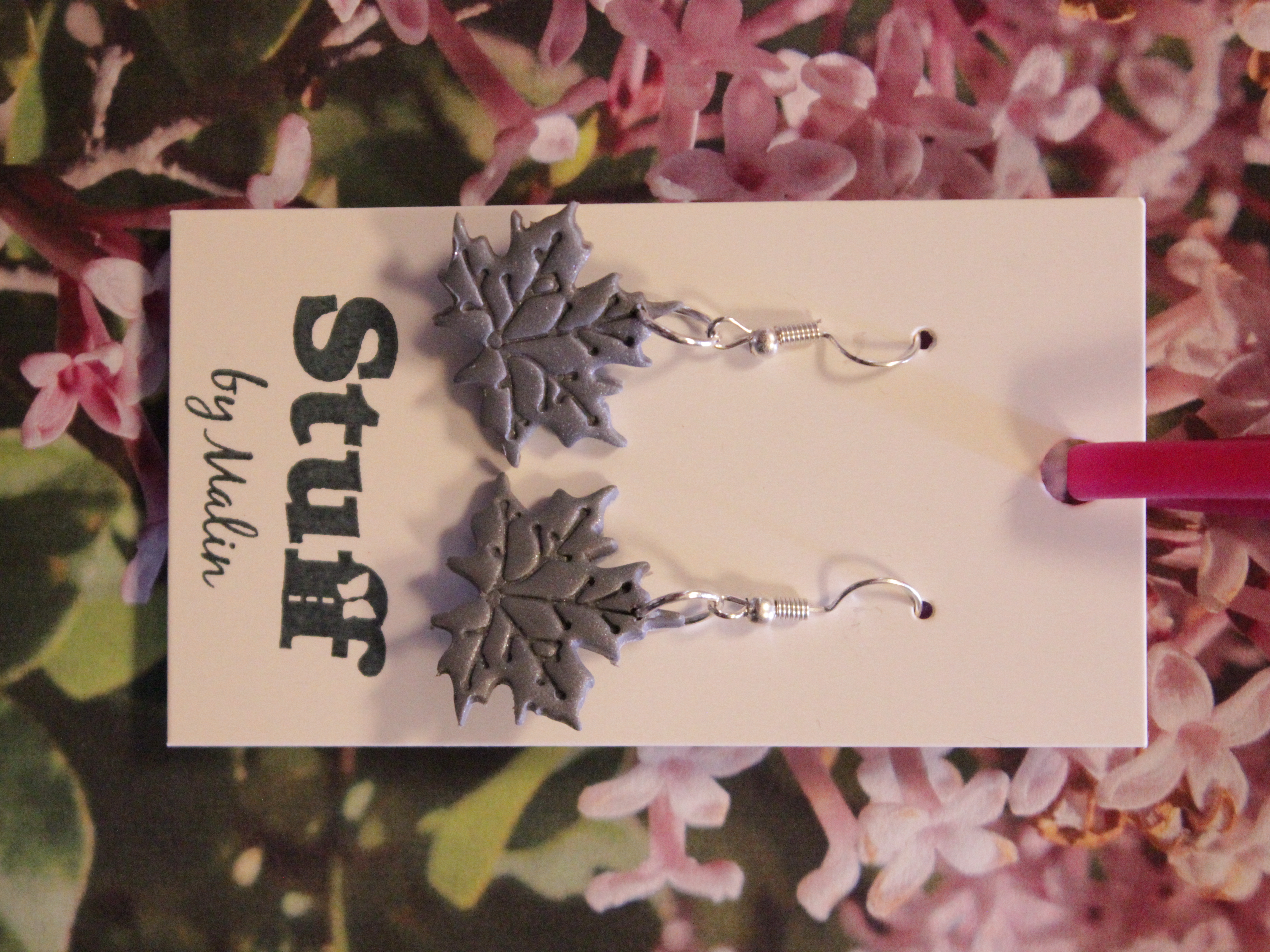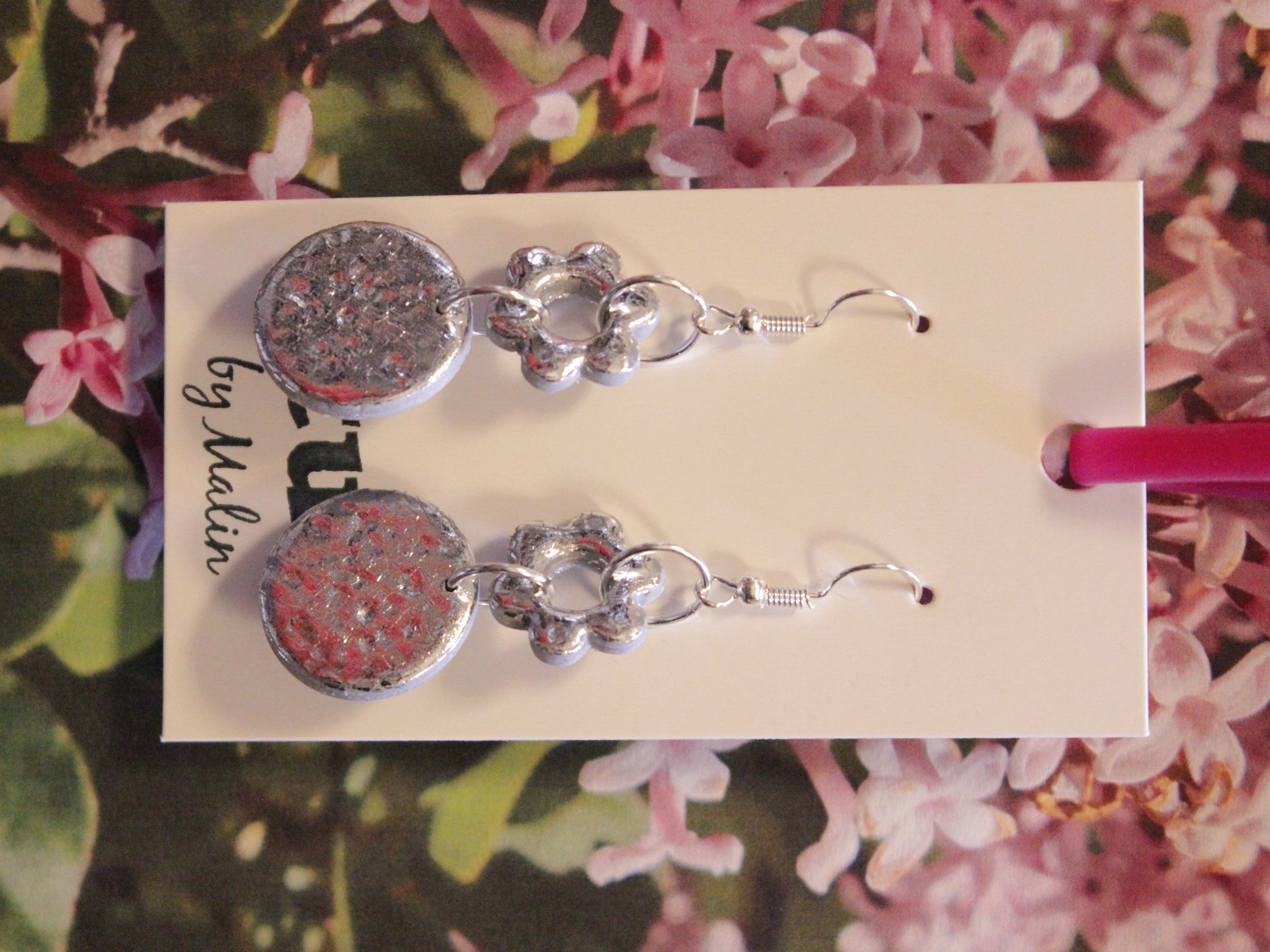 Örhängen tillverkade av polymerlera, pärlor och/eller metallberlocker av olika slag. Alla öronkrokar och stift är nickelfria. Smycken tillverkade av polymerlera är efter härdning i ugn mycket lätta och aningen flexibla.