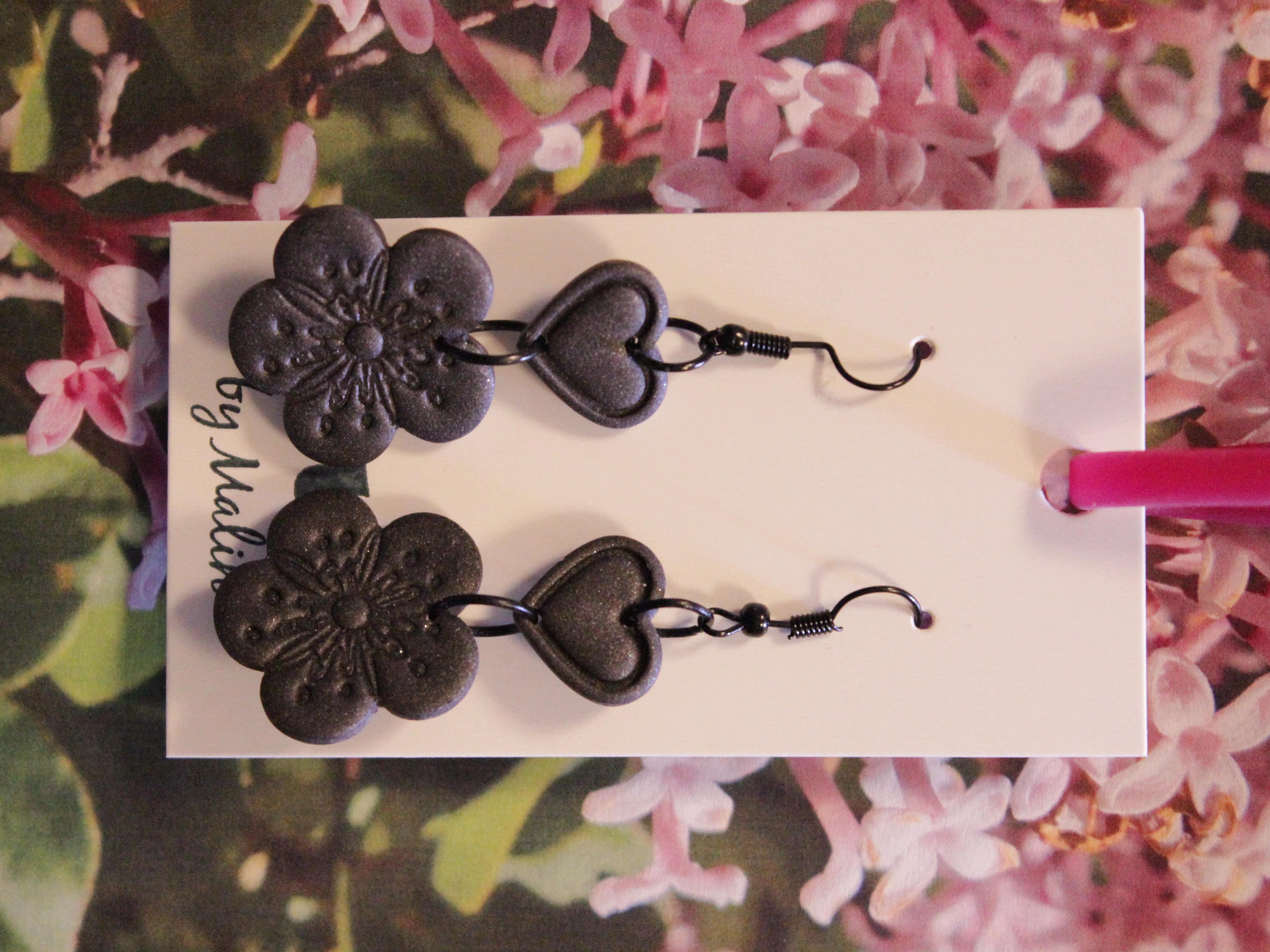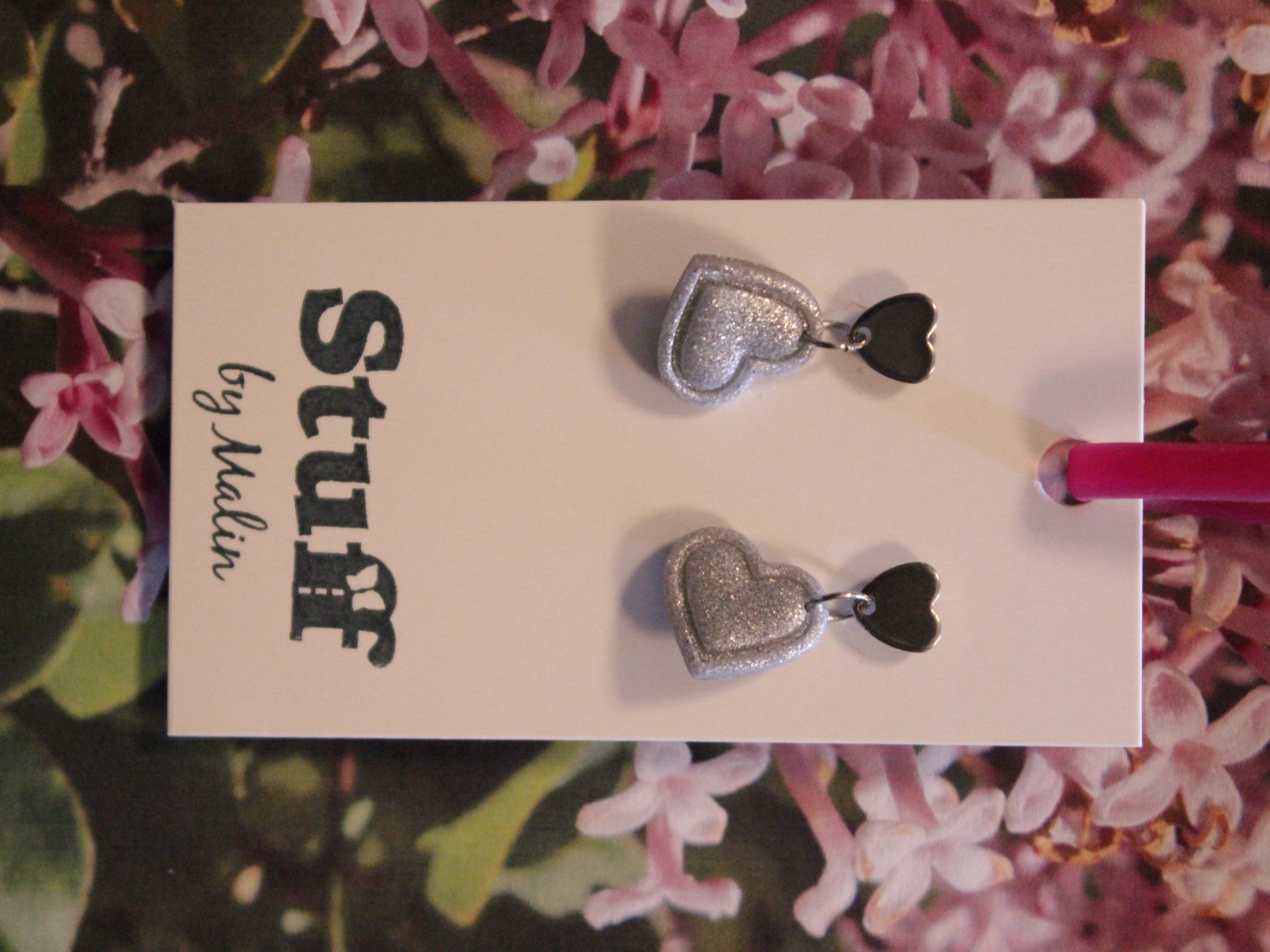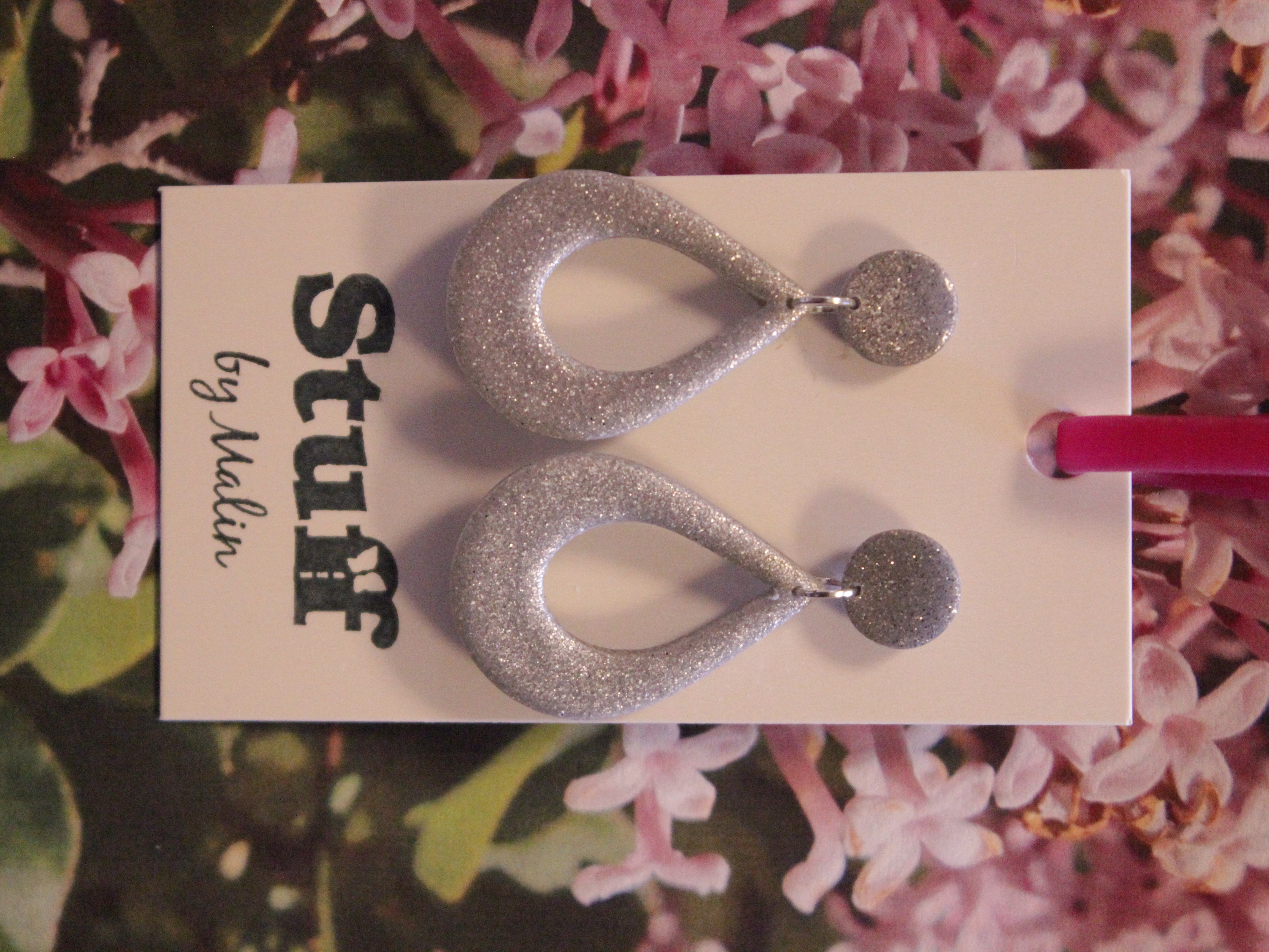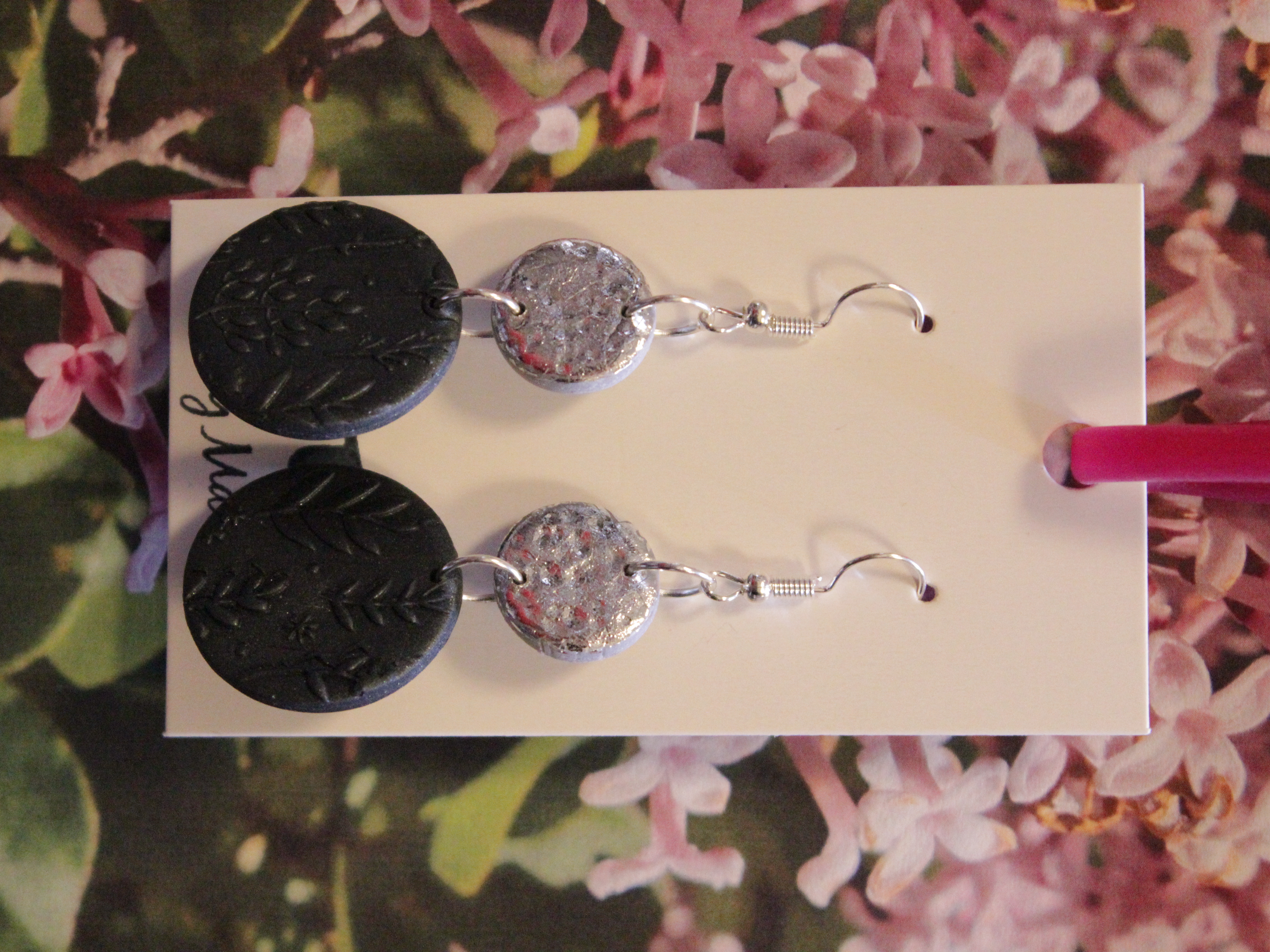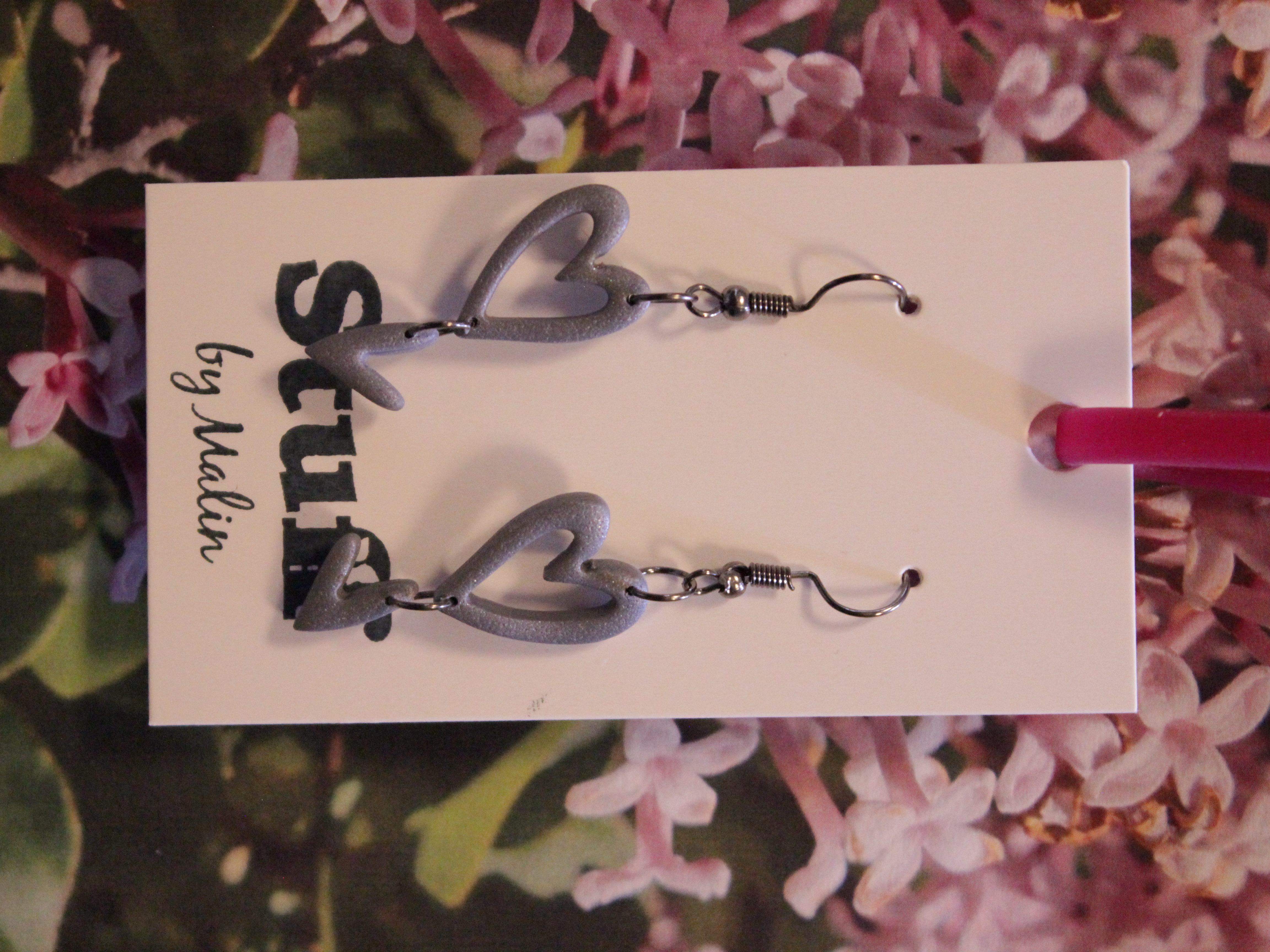 Örhängen tillverkade av polymerlera, pärlor och/eller metallberlocker av olika slag. Alla öronkrokar och stift är nickelfria. Smycken tillverkade av polymerlera är efter härdning i ugn mycket lätta och aningen flexibla.