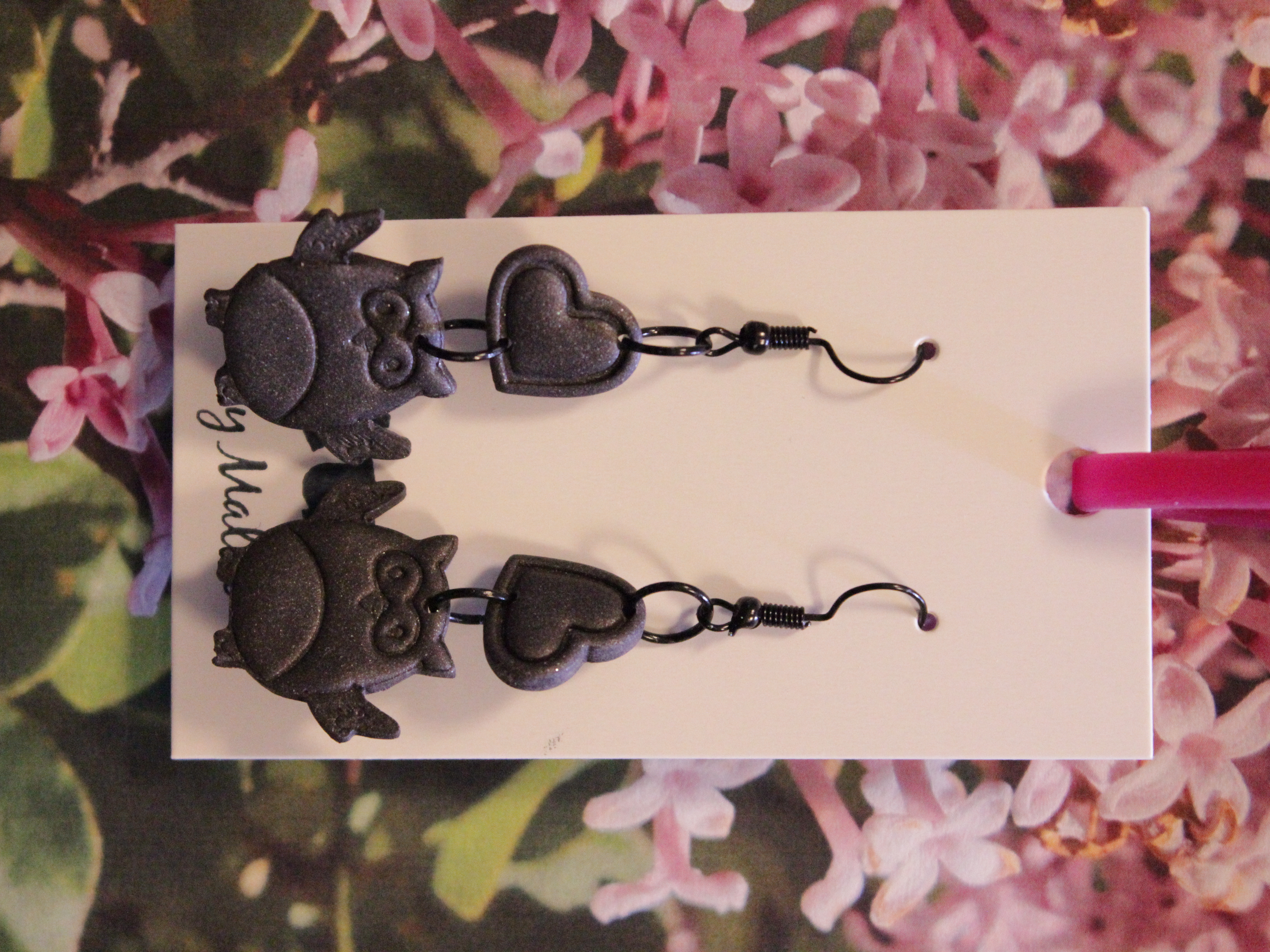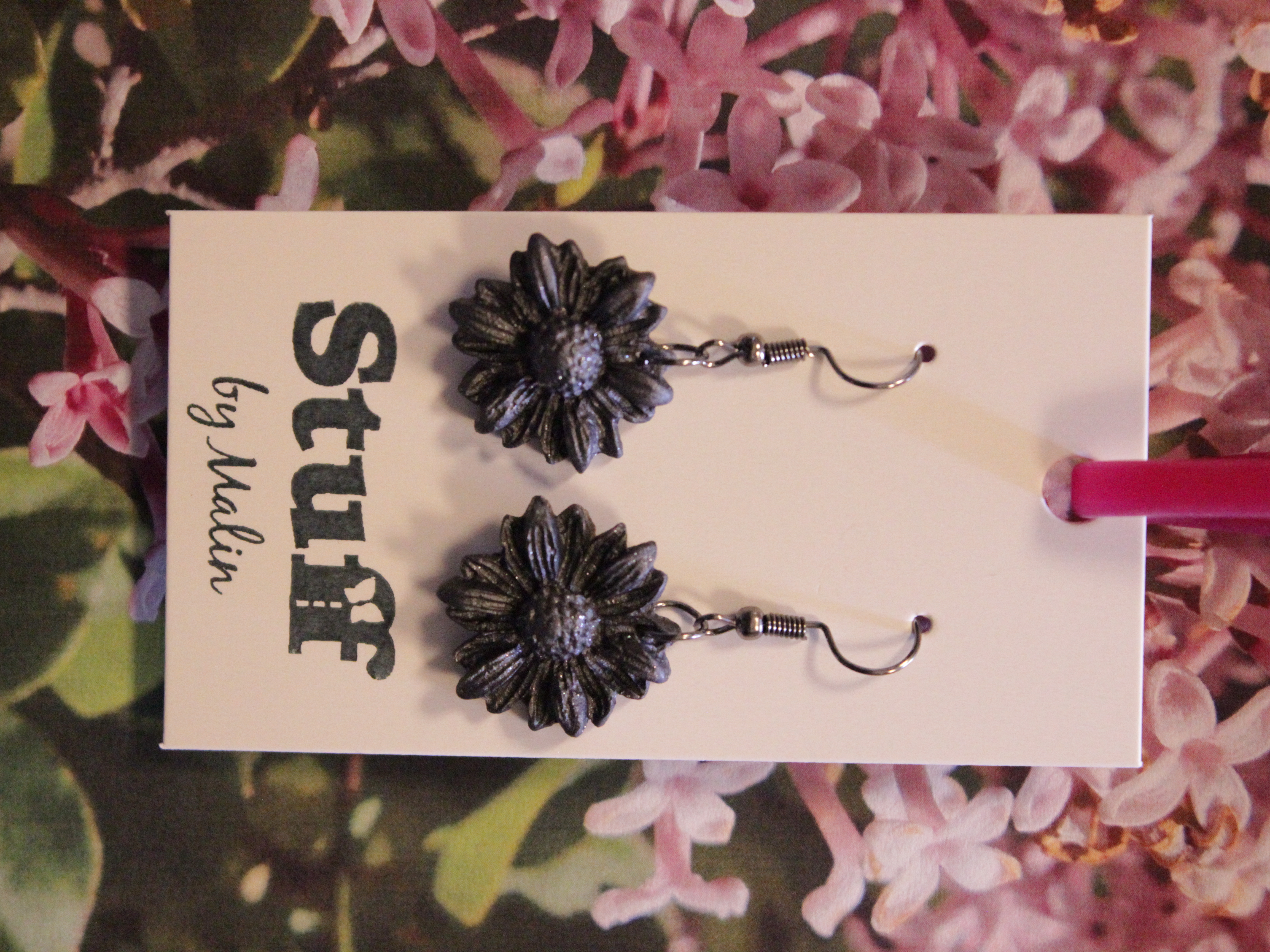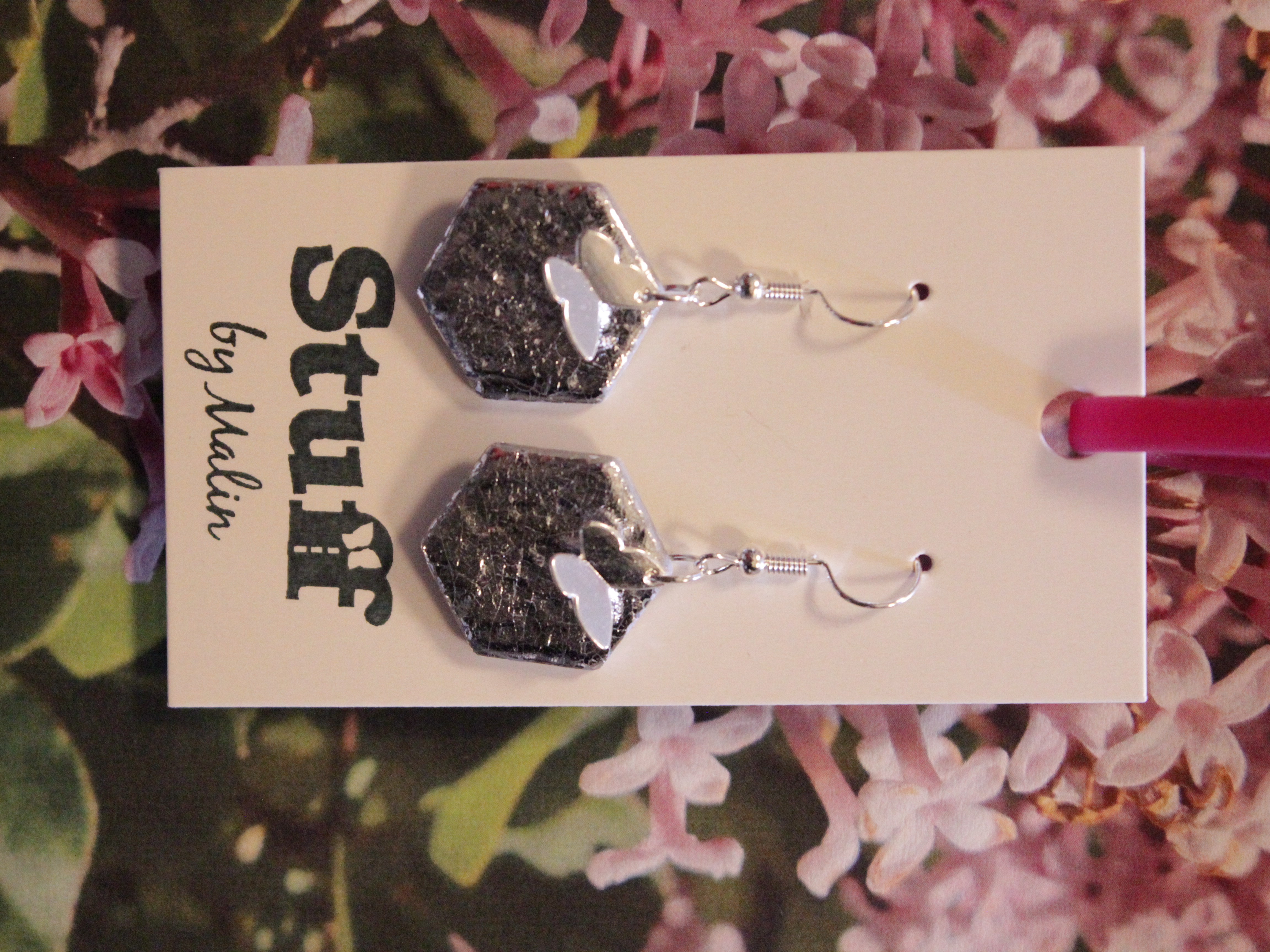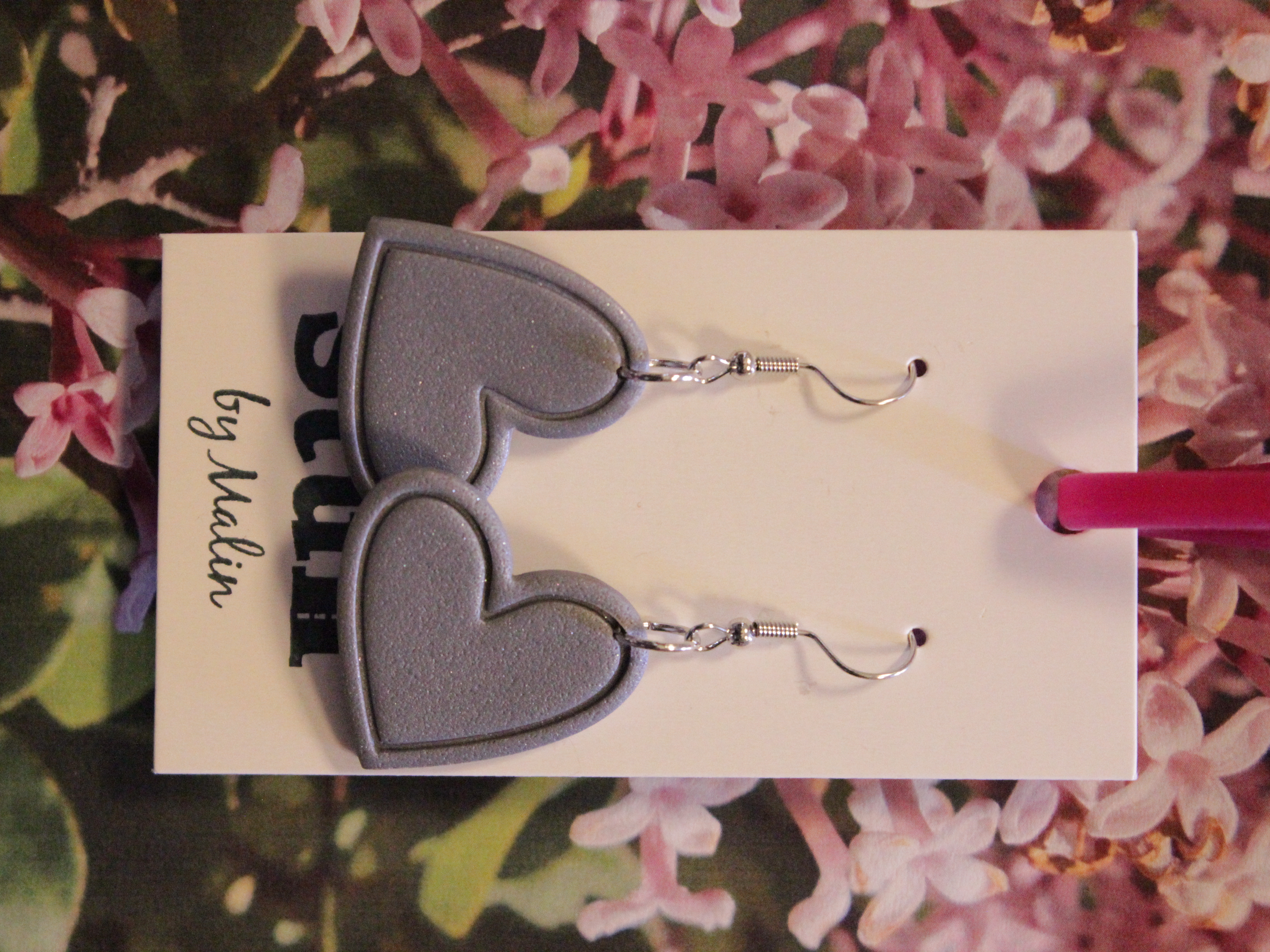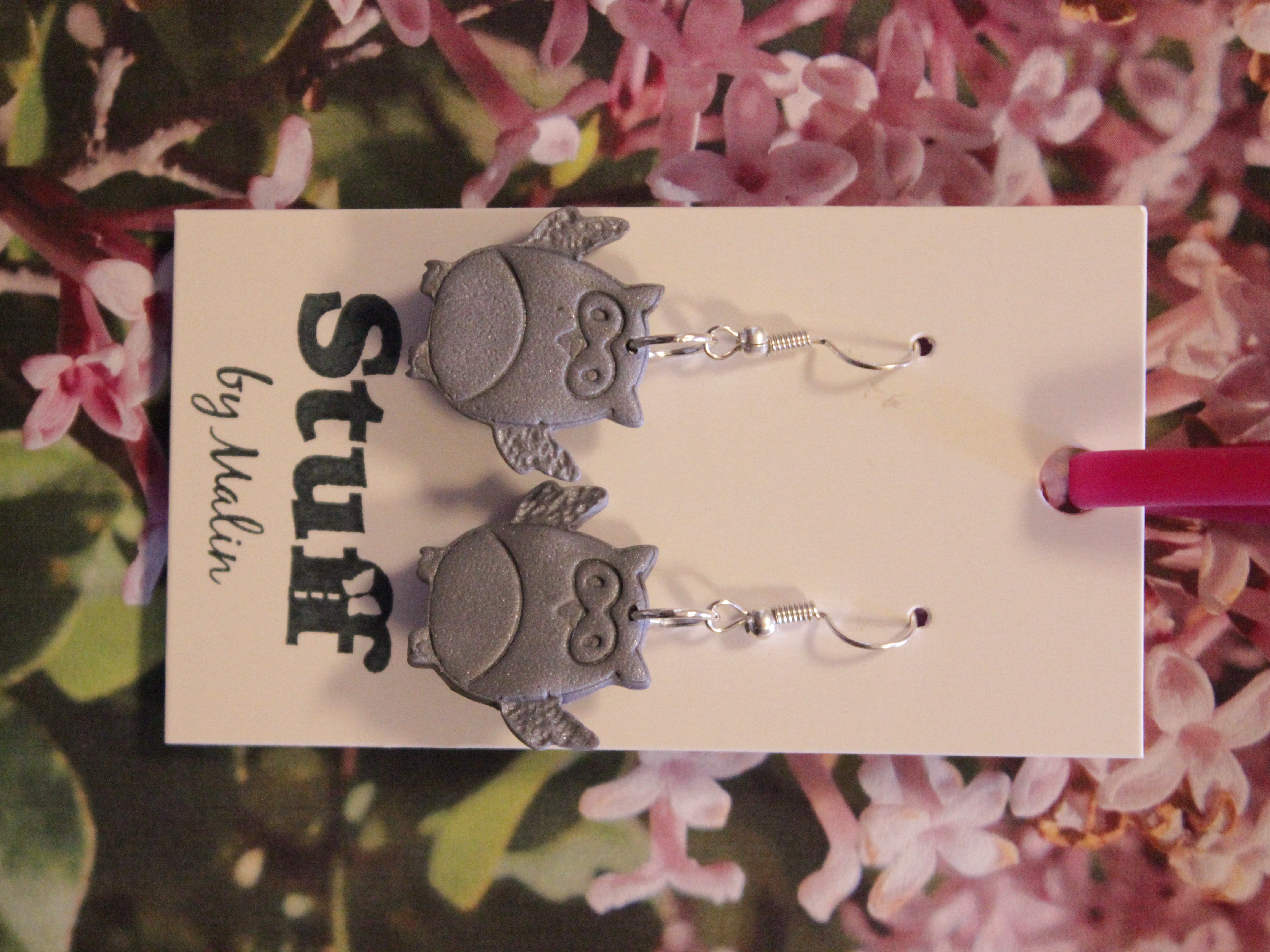 Örhängen tillverkade av polymerlera, pärlor och/eller metallberlocker av olika slag. Alla öronkrokar och stift är nickelfria. Smycken tillverkade av polymerlera är efter härdning i ugn mycket lätta och aningen flexibla.
