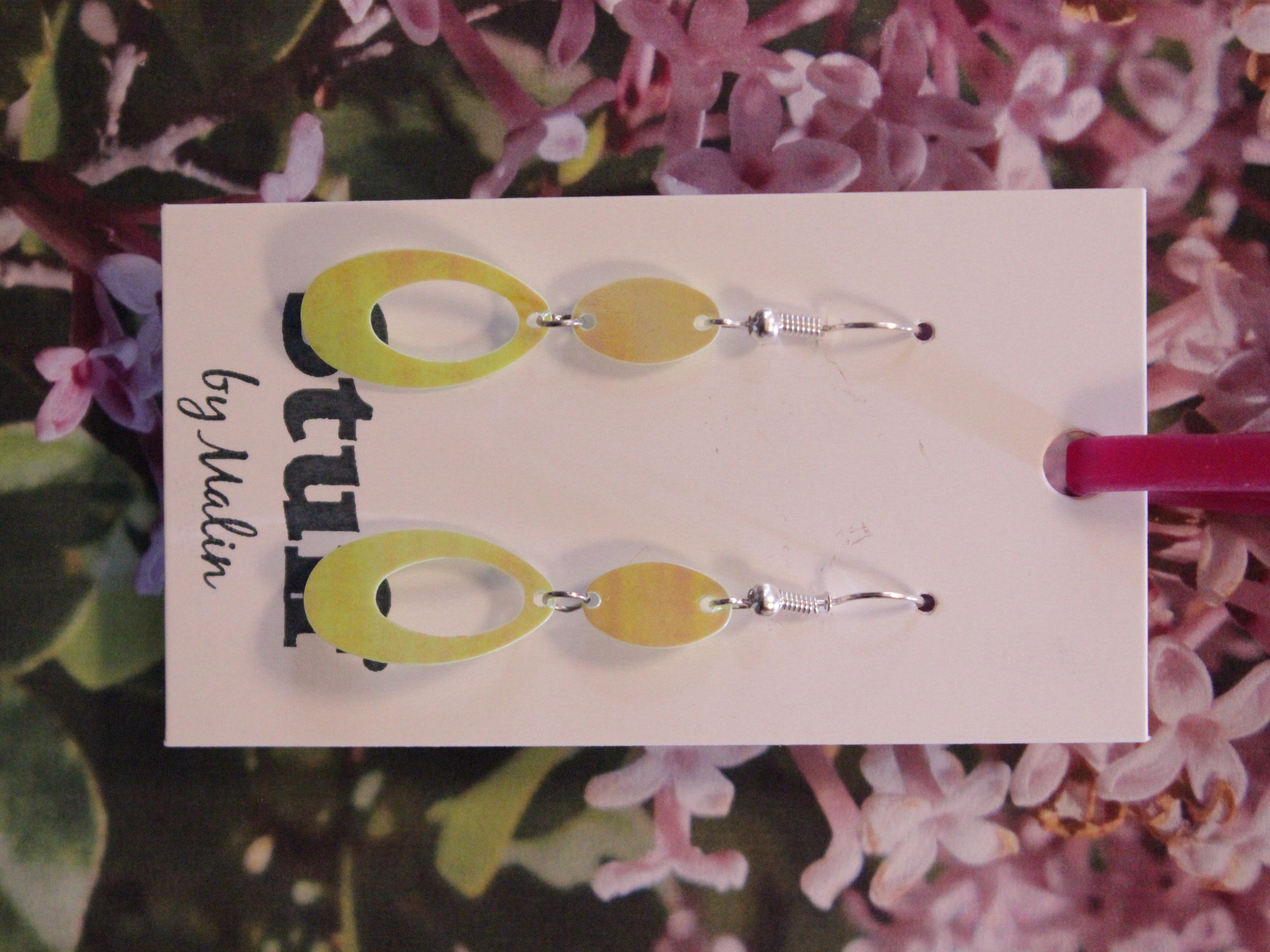 Örhängen tillverkade av polymerlera, pärlor och/eller metallberlocker av olika slag. Alla öronkrokar och stift är nickelfria. Smycken tillverkade av polymerlera är efter härdning i ugn mycket lätta och aningen flexibla.