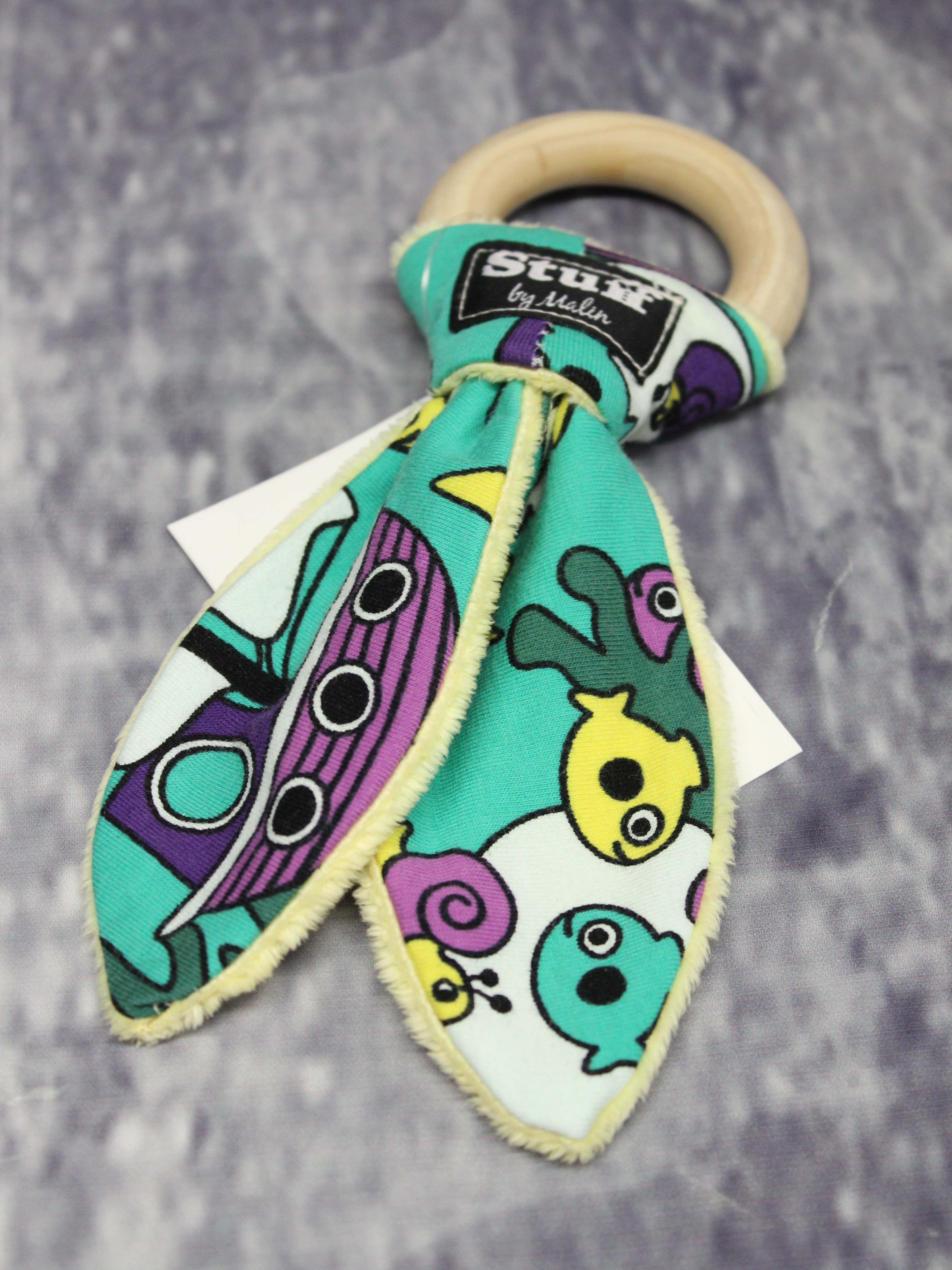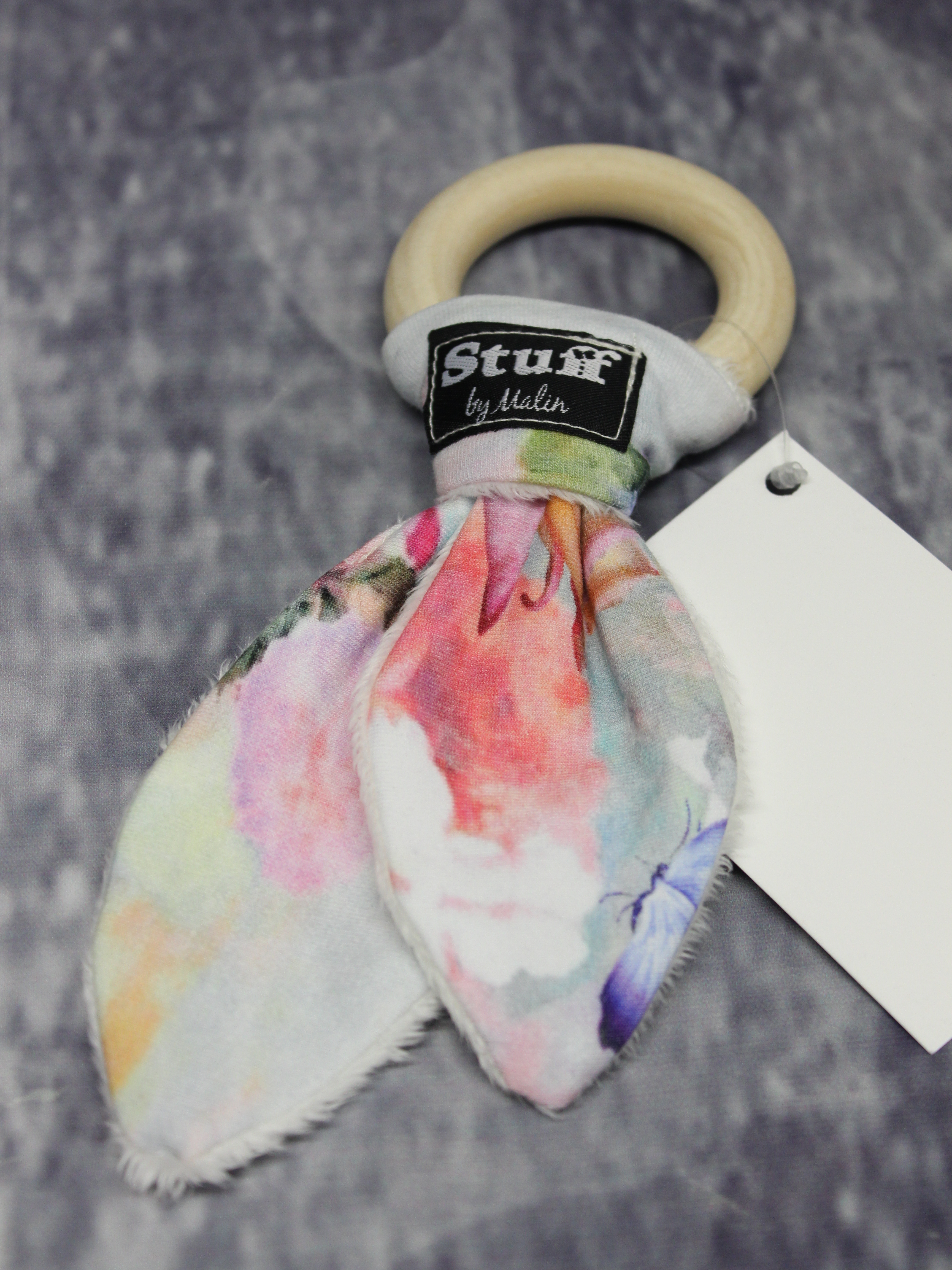 Bitringar gjorda av 100% lönnträ. Mjuka och lena för bebisens händer och tänder. Tyget går att ta av och tvätta i 40 grader.