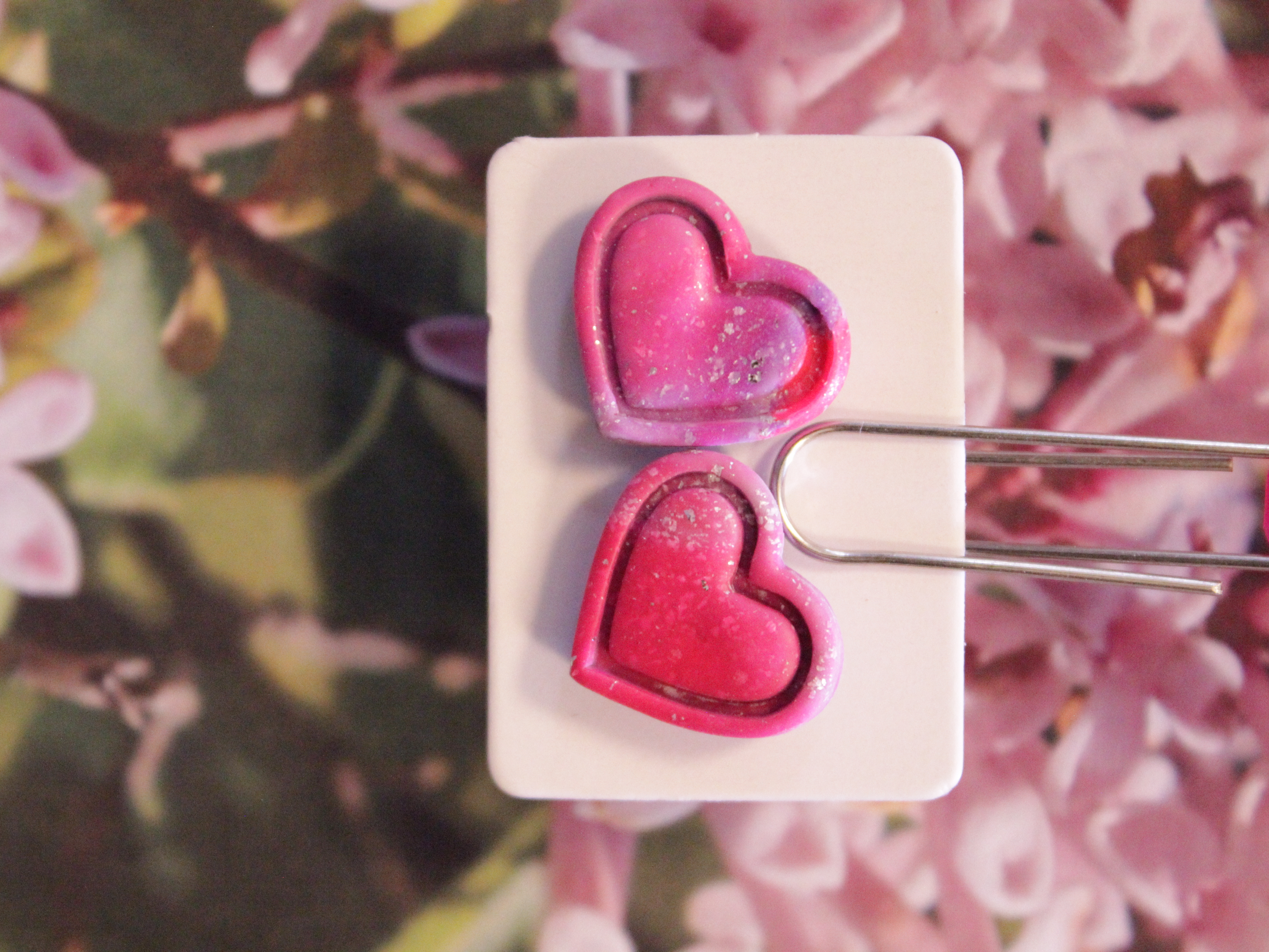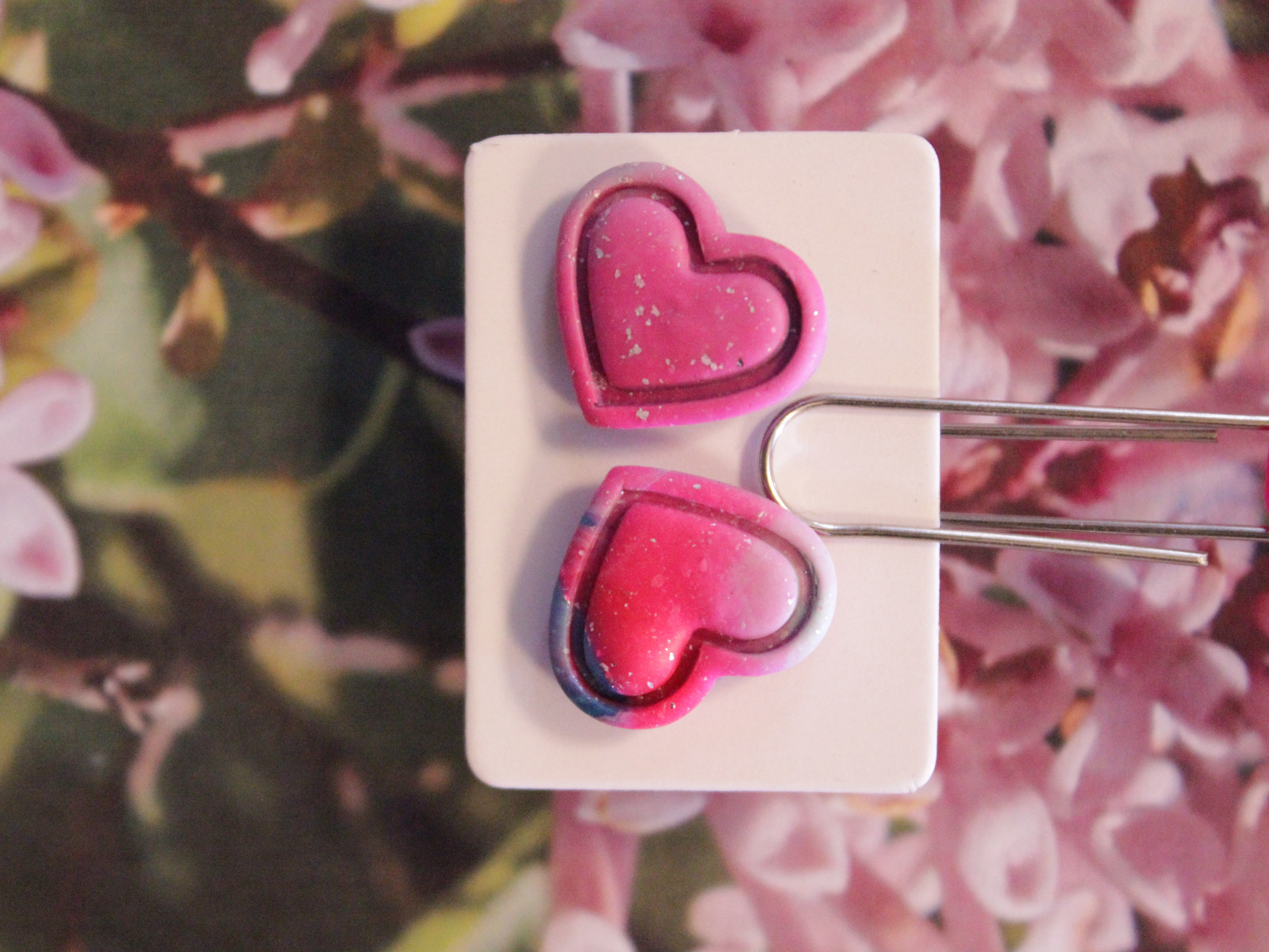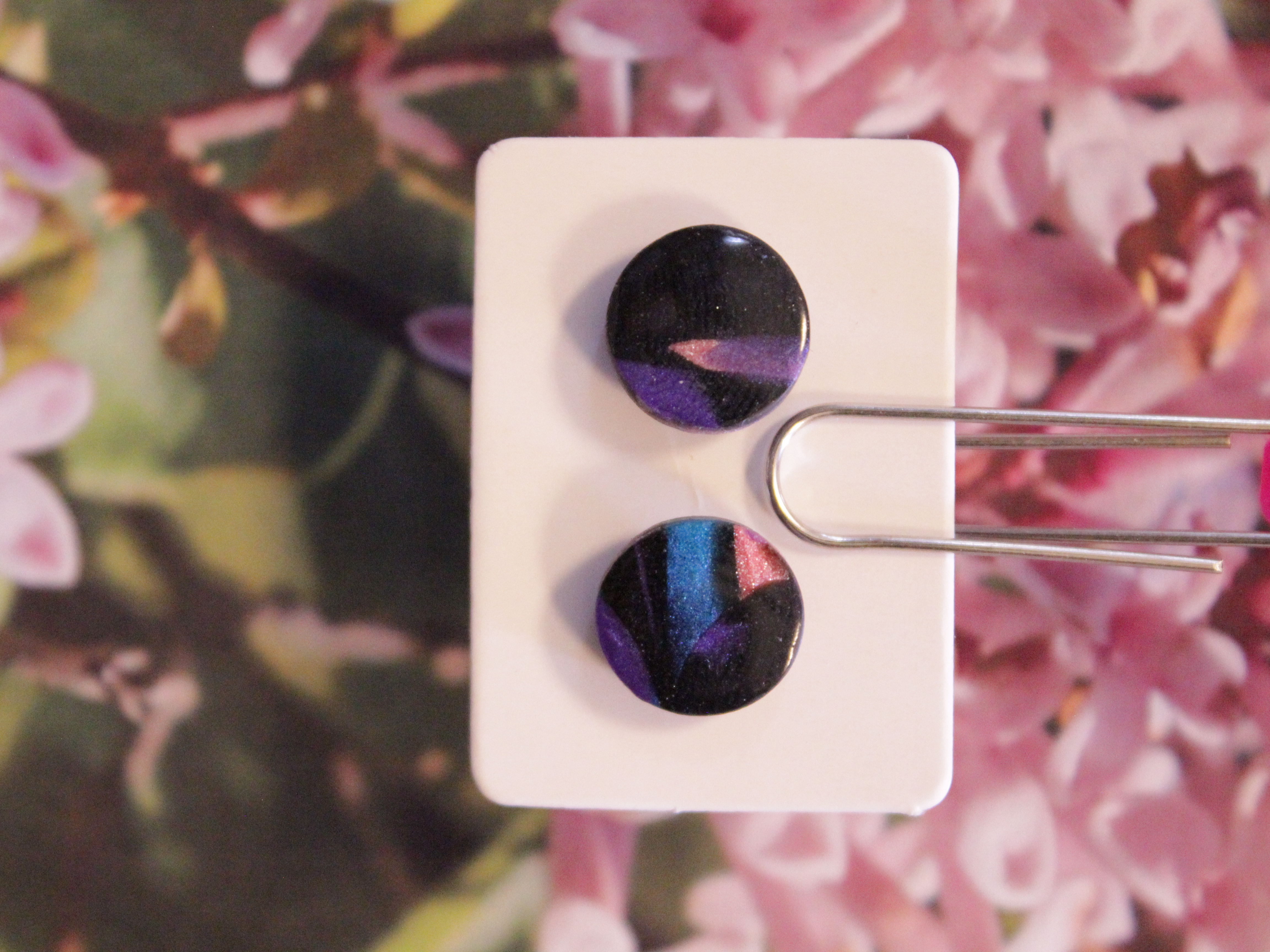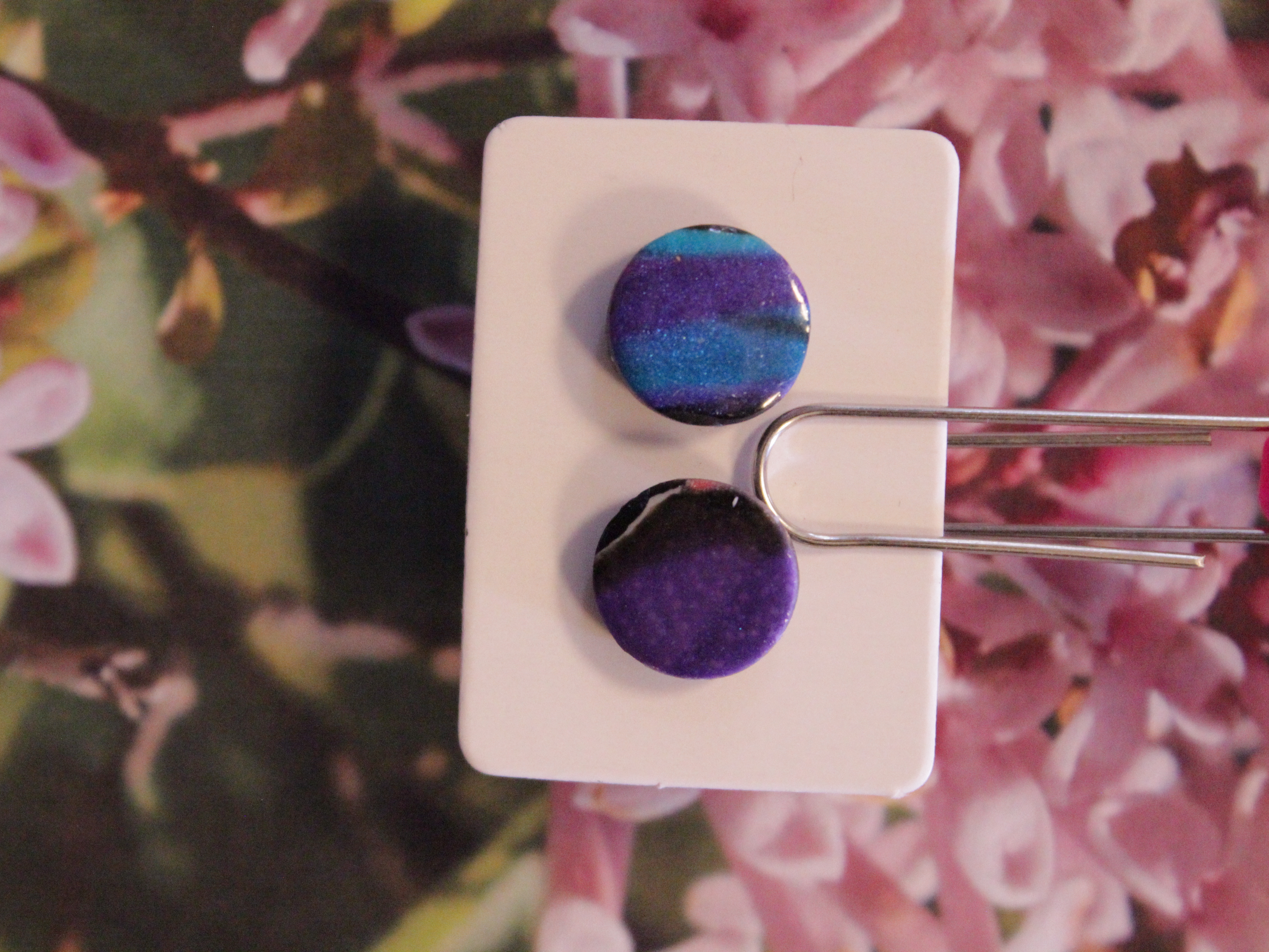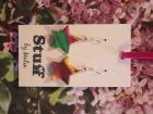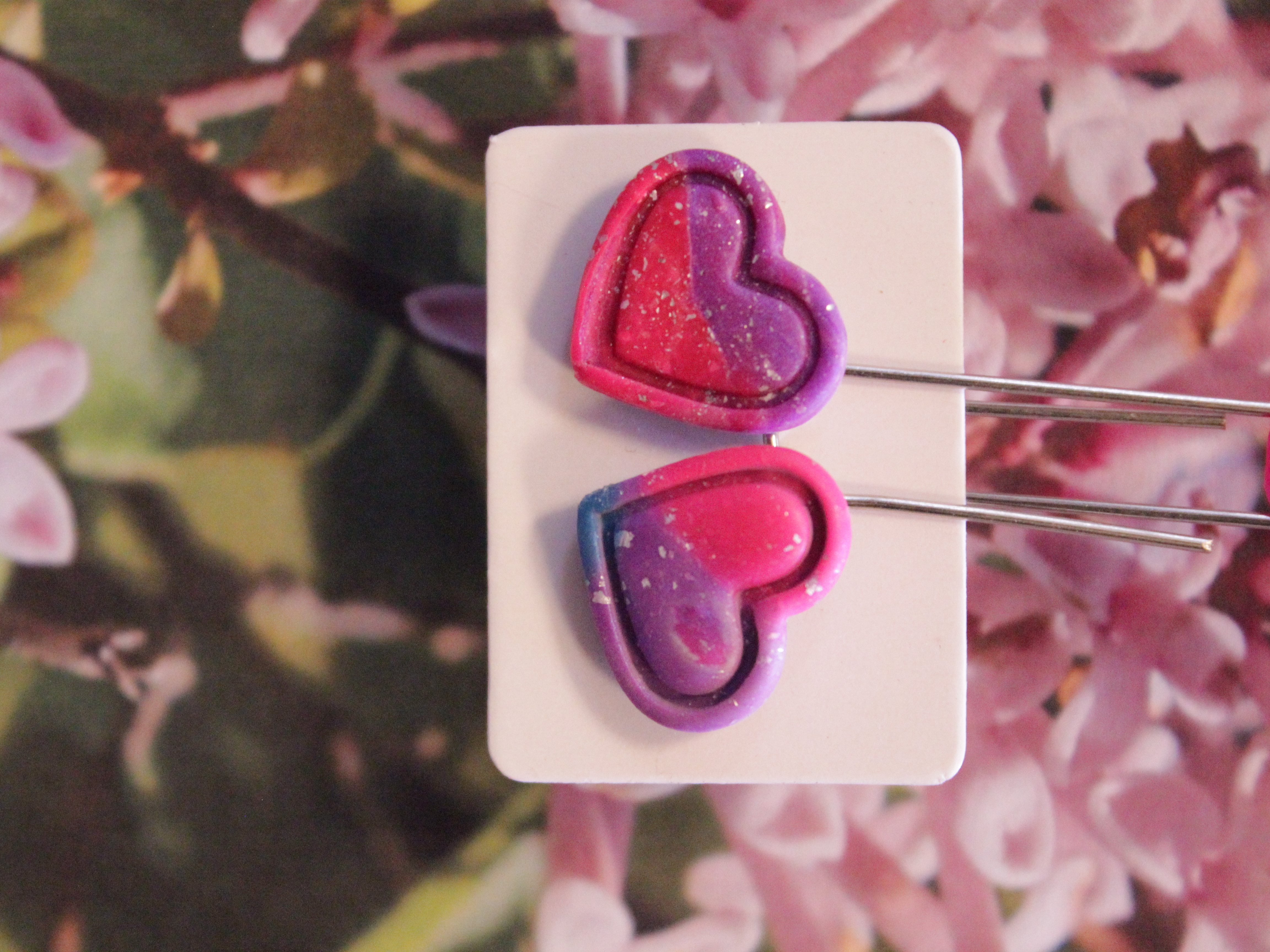 Örhängen tillverkade av polymerlera, pärlor och/eller metallberlocker av olika slag. Alla öronkrokar och stift är nickelfria. Smycken tillverkade av polymerlera är efter härdning i ugn mycket lätta och aningen flexibla.