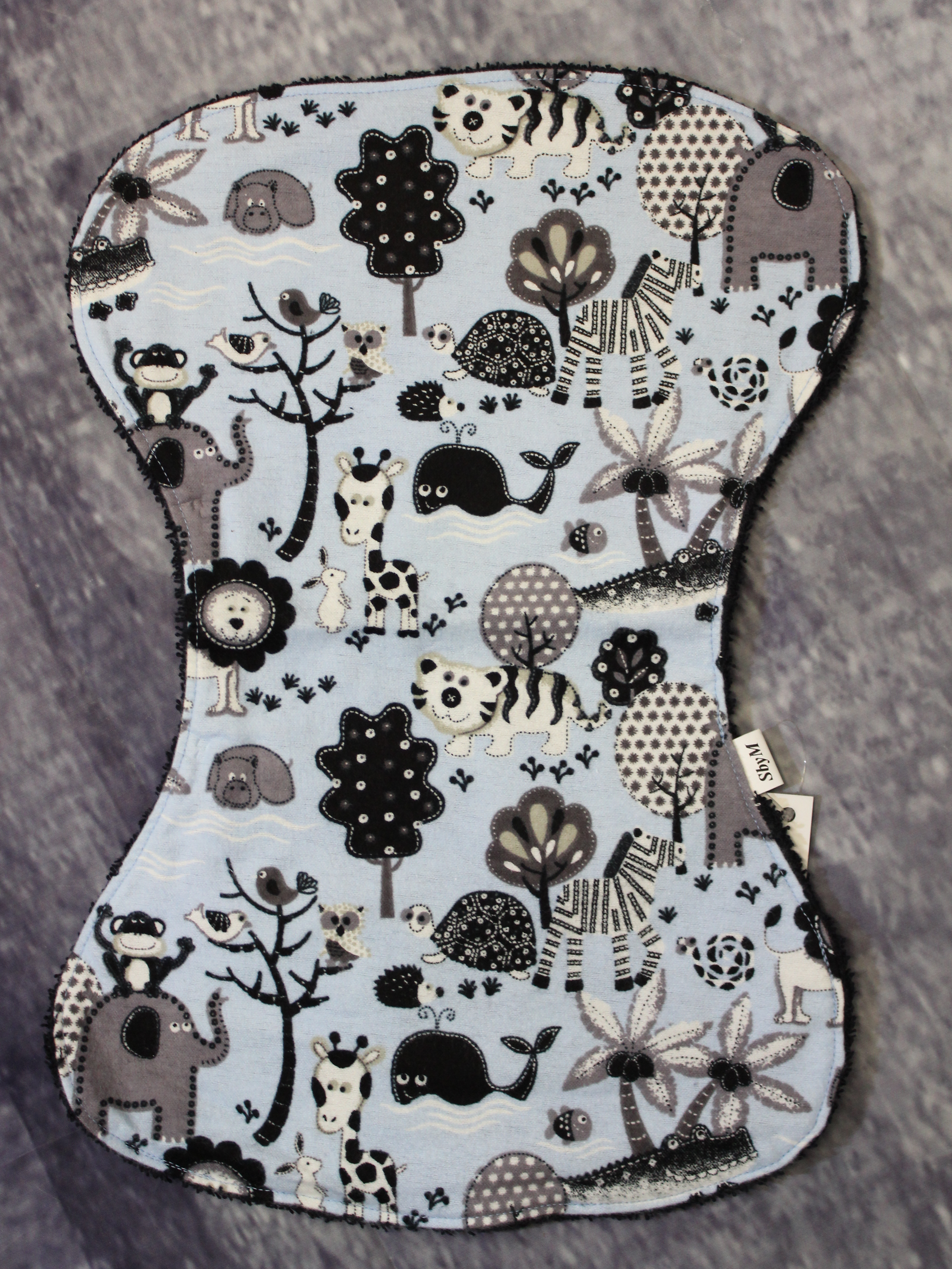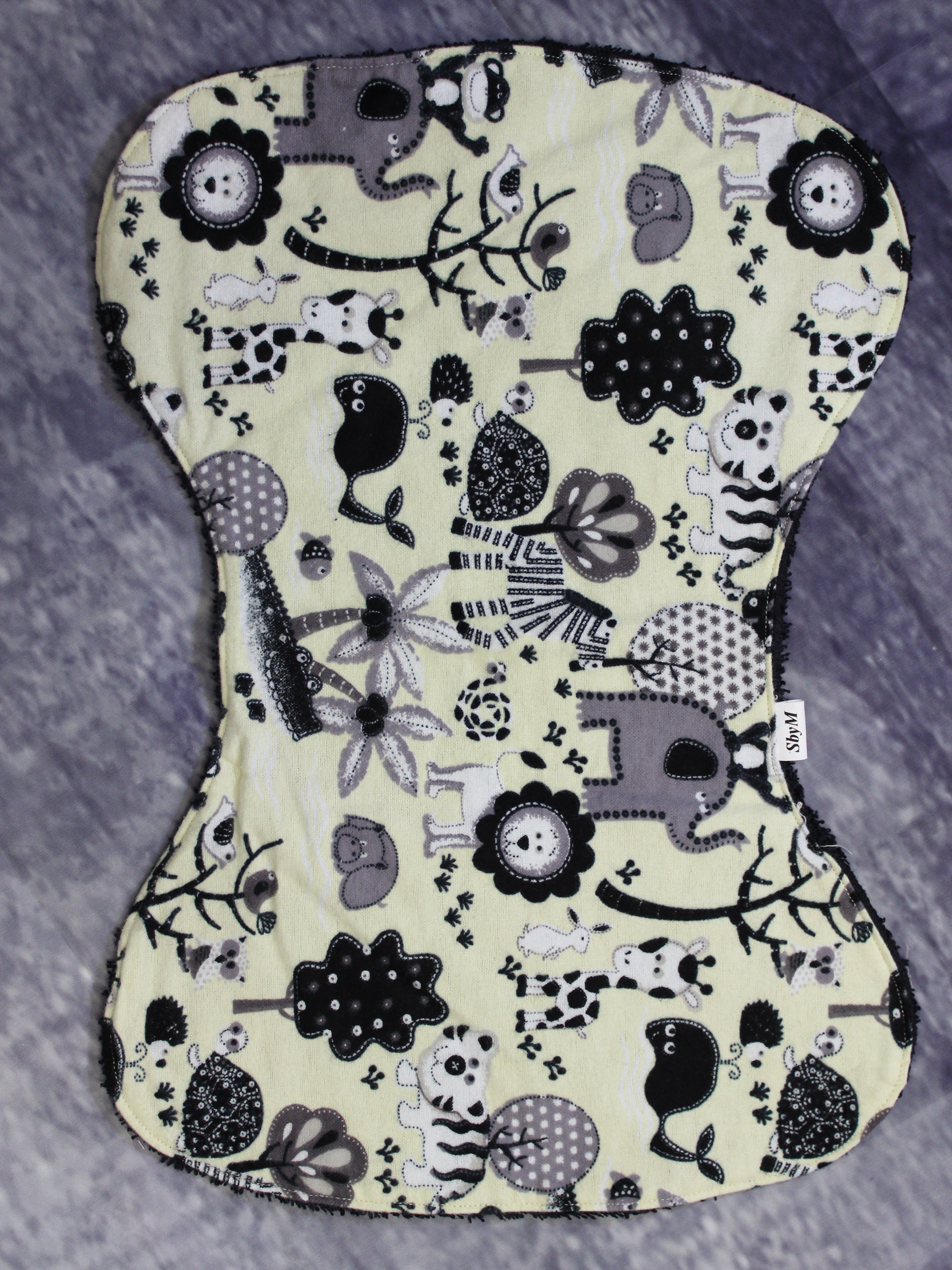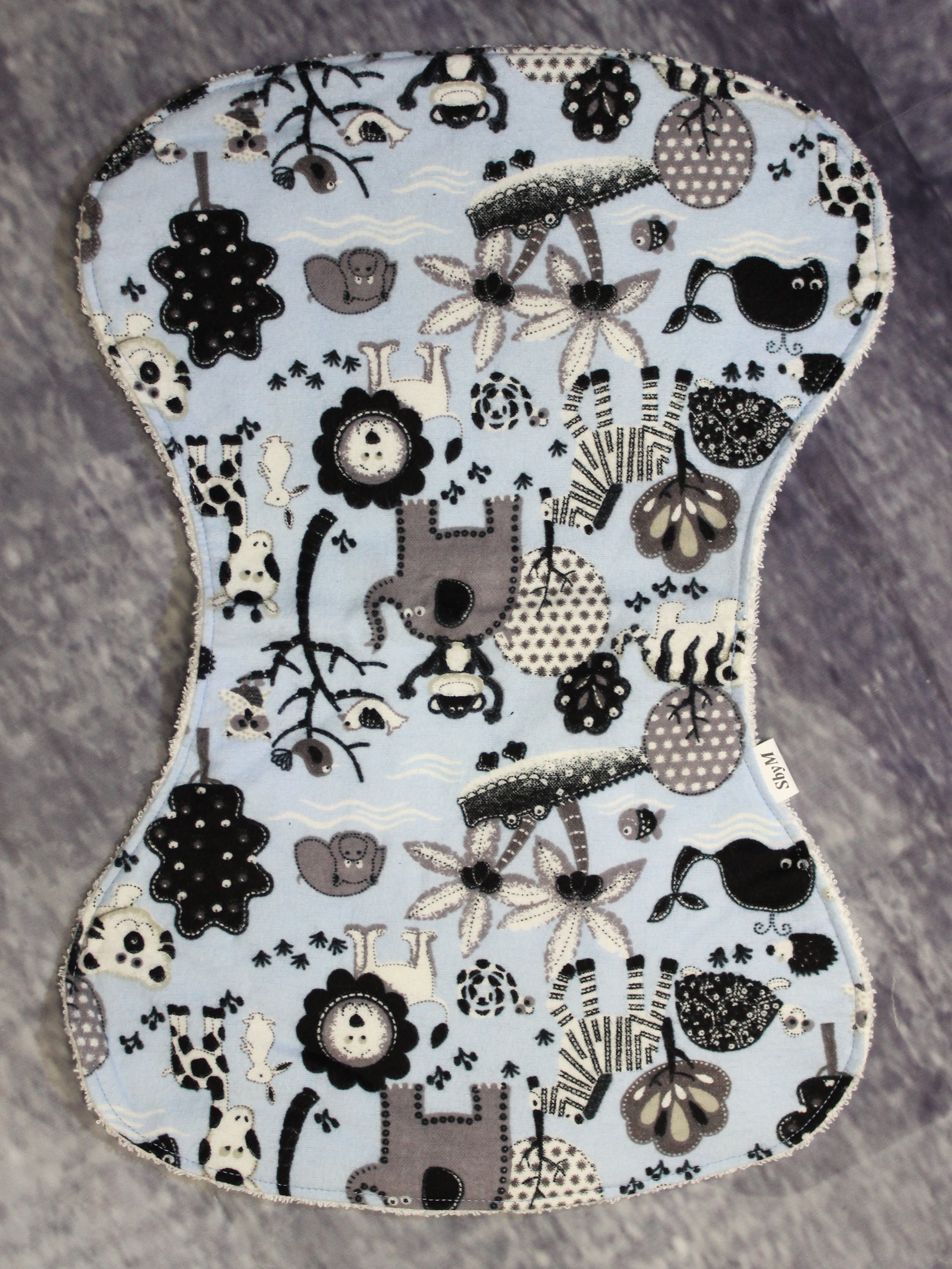 Perfekt att lägga på axeln för att skydda kläderna vid rapning av det lilla barnet. Sydda i absorberande flanell med frottébaksida.